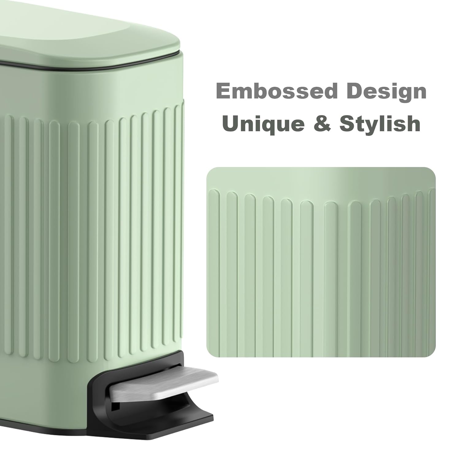 TrashAid Slim Bathroom Trash Can with Lid Soft Close, 6 Liter/1.6 Gallon Stainless Steel Small Garbage Can with Removable Inner Bucket, Step Pedal, Slim Wastebasket for Toilet, Office, Bedroom, Green
