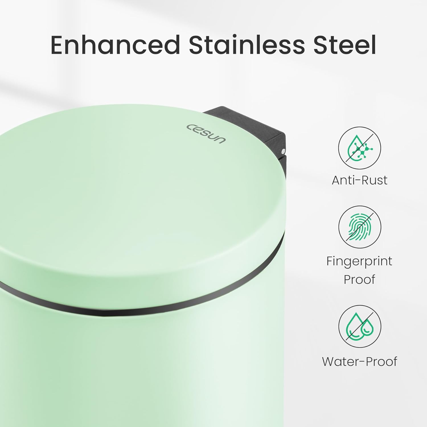 Cesun 1.2 Gallons Small Green Trash Can, Bathroom Garbage Can with Lid and Foot Pedal, Mini Round Wastebasket for Bathroom, Bedroom, Office, 4.5 Liters / 1.2 Gallons, Green