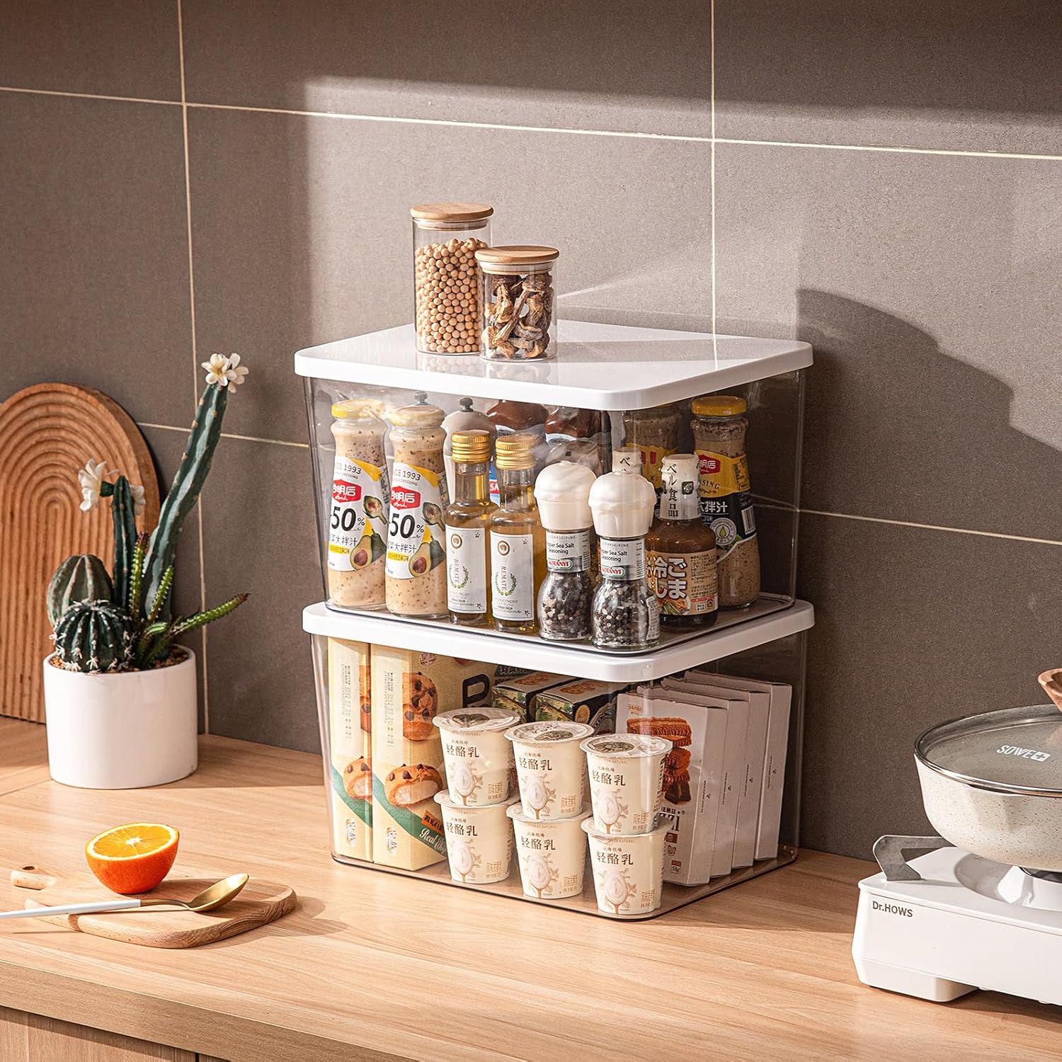 Clear plastic storage bins with LIDS-3packs,storage containers for snacks, cosmetics, books, dog food, Storage Organizer for Nursery,Kitchen, Living room,Bedroom, Bathroom, Office (Clear-White Lid)