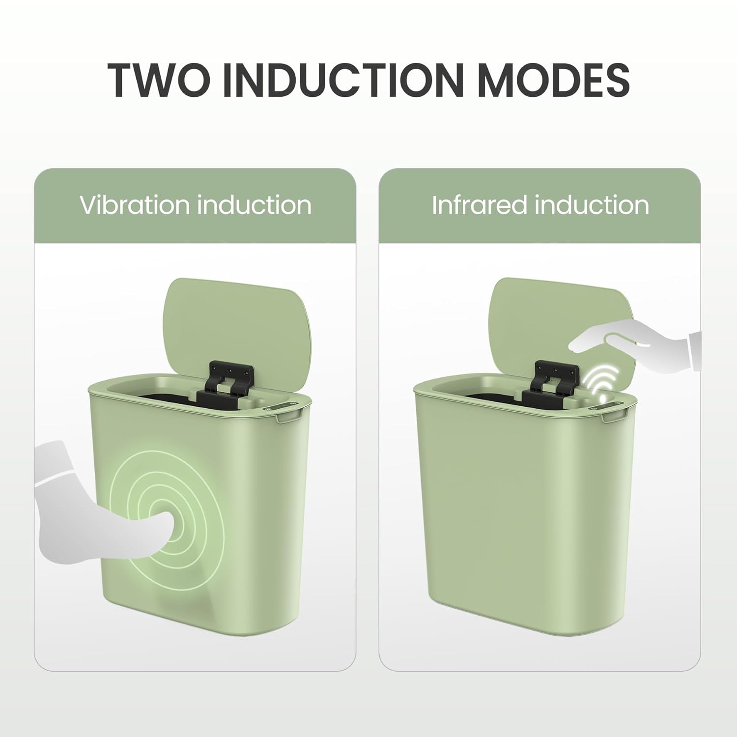 • Touchless Trash Can: Automatic infrared sensing technology, when your hand or any object over the sensing area, the lid will open, touchless mode is more hygienic. Those with mobility problems may find the automatic feature more convenient than foot operated models. Requires 2 AA batteries (not included)