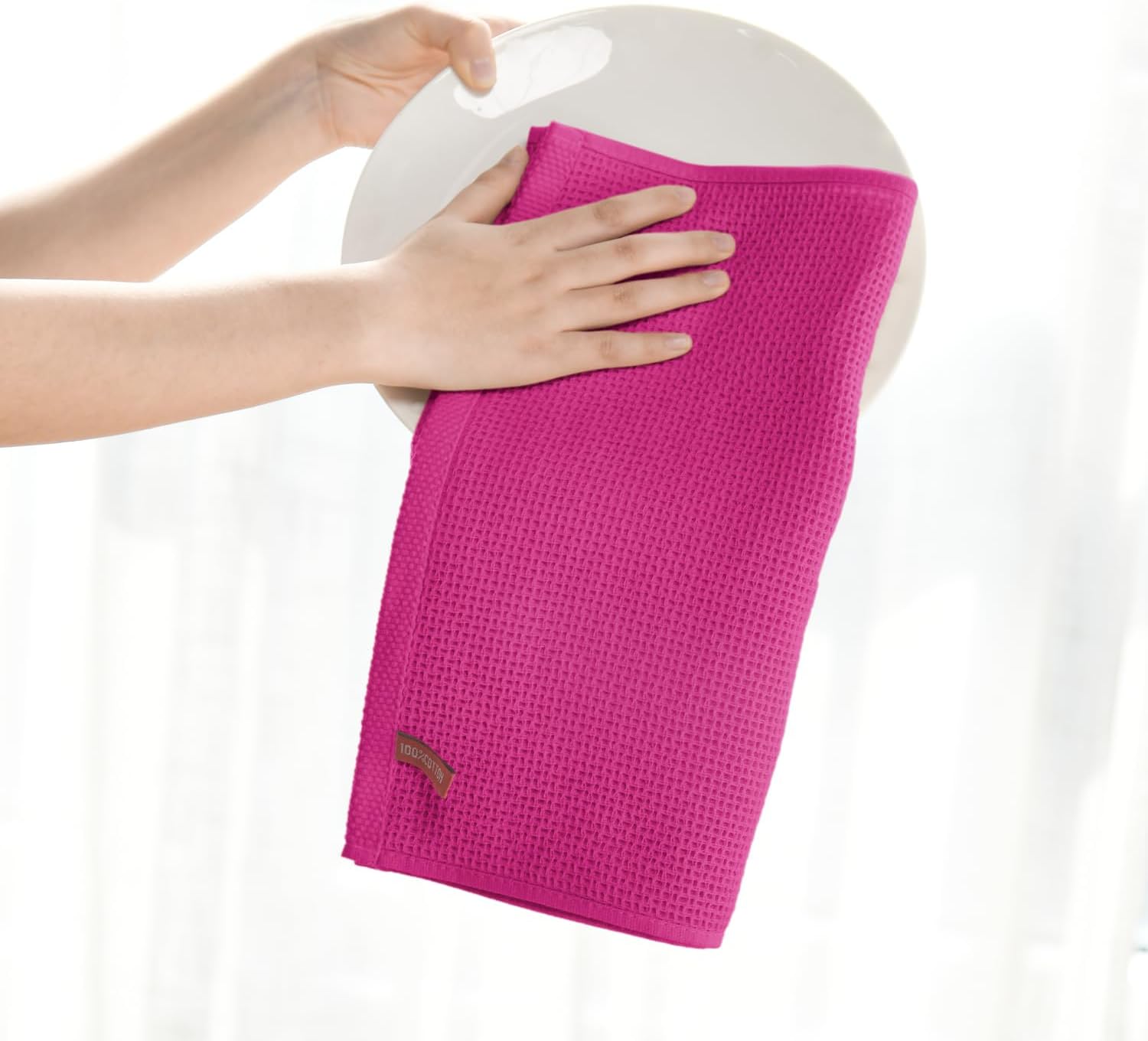 • COTTON DISH CLOTHS: 100% cotton waffle weave dishcloths that feel soft and comfortable. Unique honeycombs design make it have durability. And it softens with each wash, so these dish towels won't scratch your delicate cookware, plates and pans.