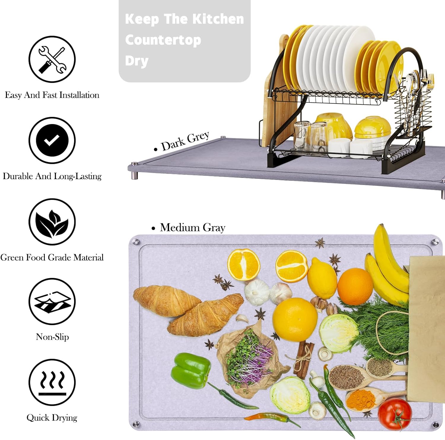 • 【 Versatile Use & Modern Design 】Not just a quick dish drying stone mat for kitchen sink, it also doubles as a heat-proof mat, or pet feeding mat. Its sleek, natural design makes it a practical and thoughtful gift for friends or family who value a clean, organized kitchen.Tips:Avoid spilling dark liquids like coffee or red wine to prevent staining