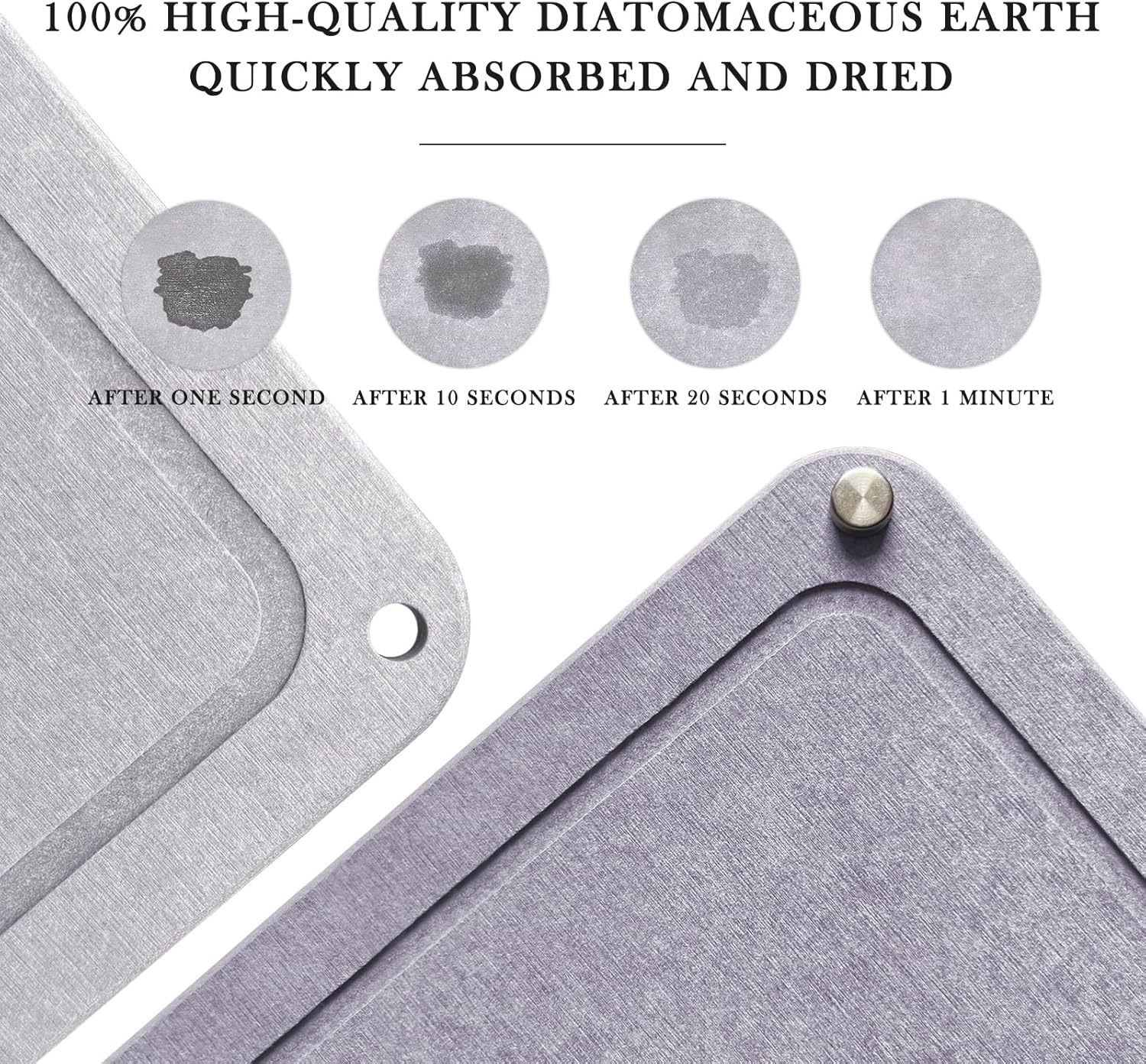 • 【 Material 】Crafted from high-quality diatomaceous earth, this stone drying mat for kitchen counter is made from natural mineral material derived from diatom fossils. It’s a sustainable, plastic-free solution for your kitchen, ensuring a greener lifestyle