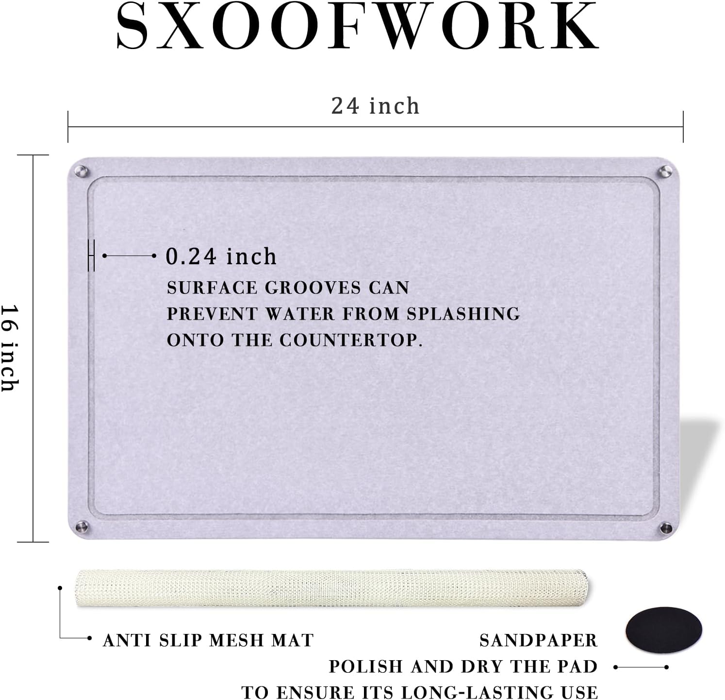 • 【 Versatile Use & Modern Design 】Not just a quick dish drying stone mat for kitchen sink, it also doubles as a heat-proof mat, or pet feeding mat. Its sleek, natural design makes it a practical and thoughtful gift for friends or family who value a clean, organized kitchen.Tips:Avoid spilling dark liquids like coffee or red wine to prevent staining