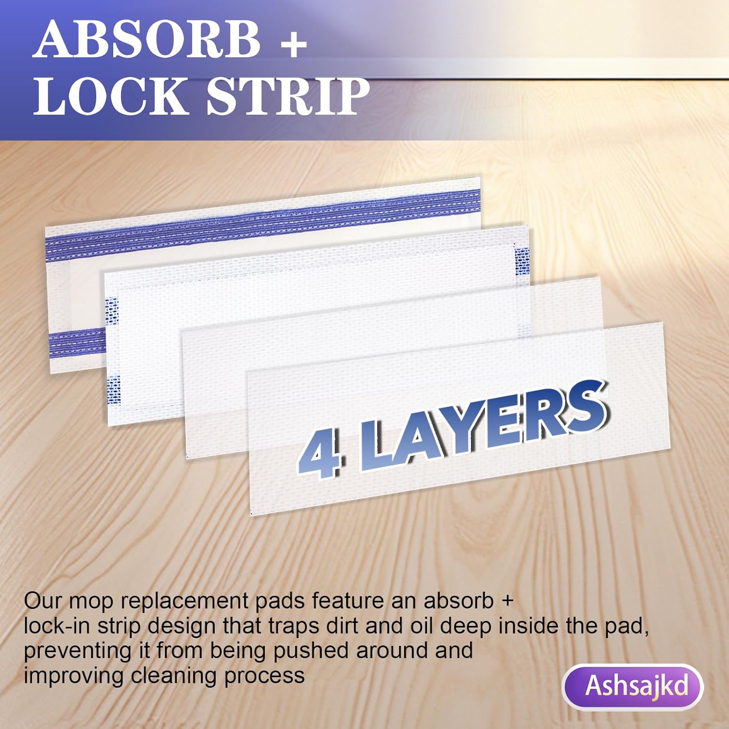 • Efficient Cleaning Power: Our mop replacement pad is made of microfiber Absorb + Lock Strip technology helps picking up dust,dirt and remove stubborn stains, leaving floors spotless with minimal effort