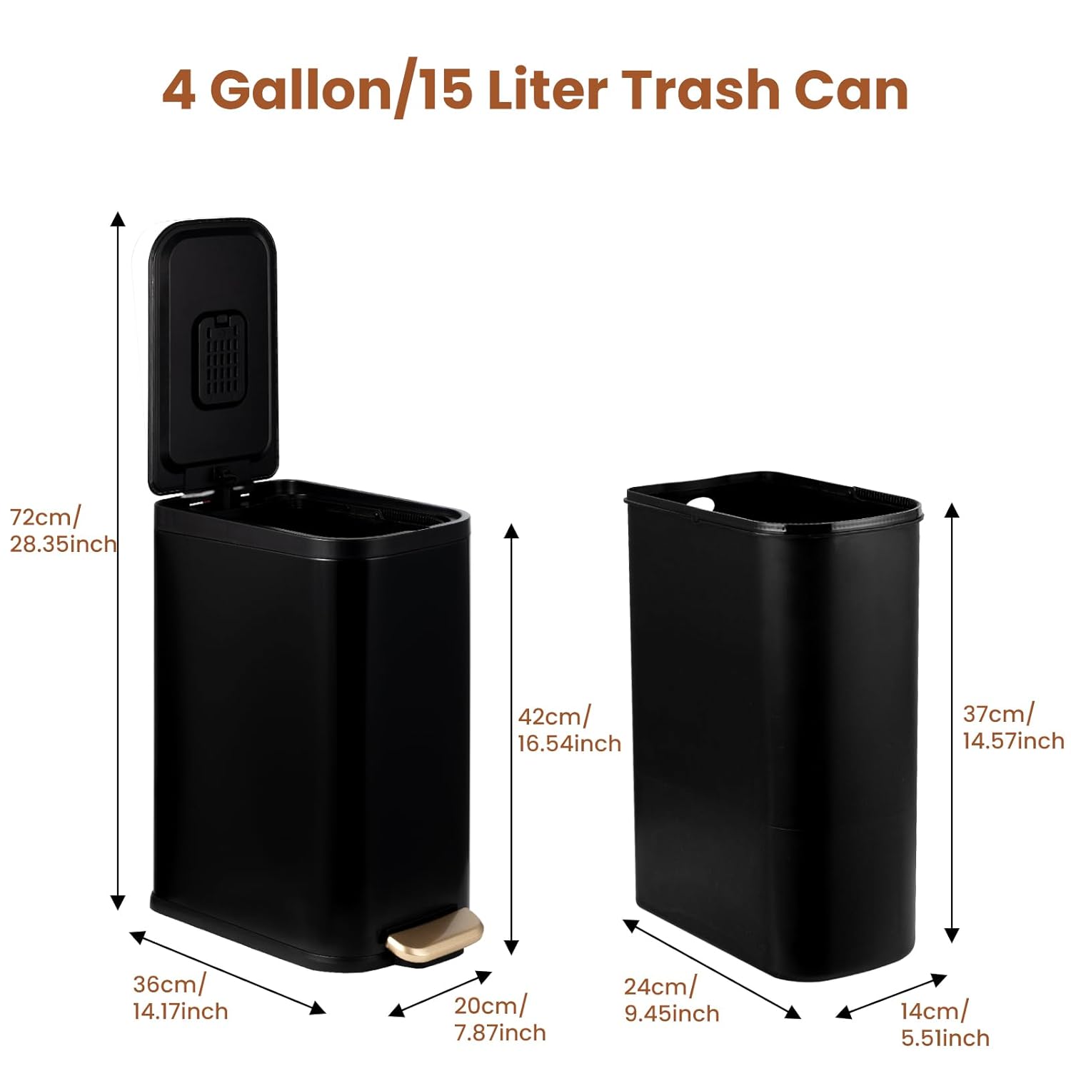 • Removable Plastic Inner Bucket: The bin comes with a removable plastic inner bucket, making it convenient to empty and clean. You can easily take out the inner bucket to dispose of the garbage.