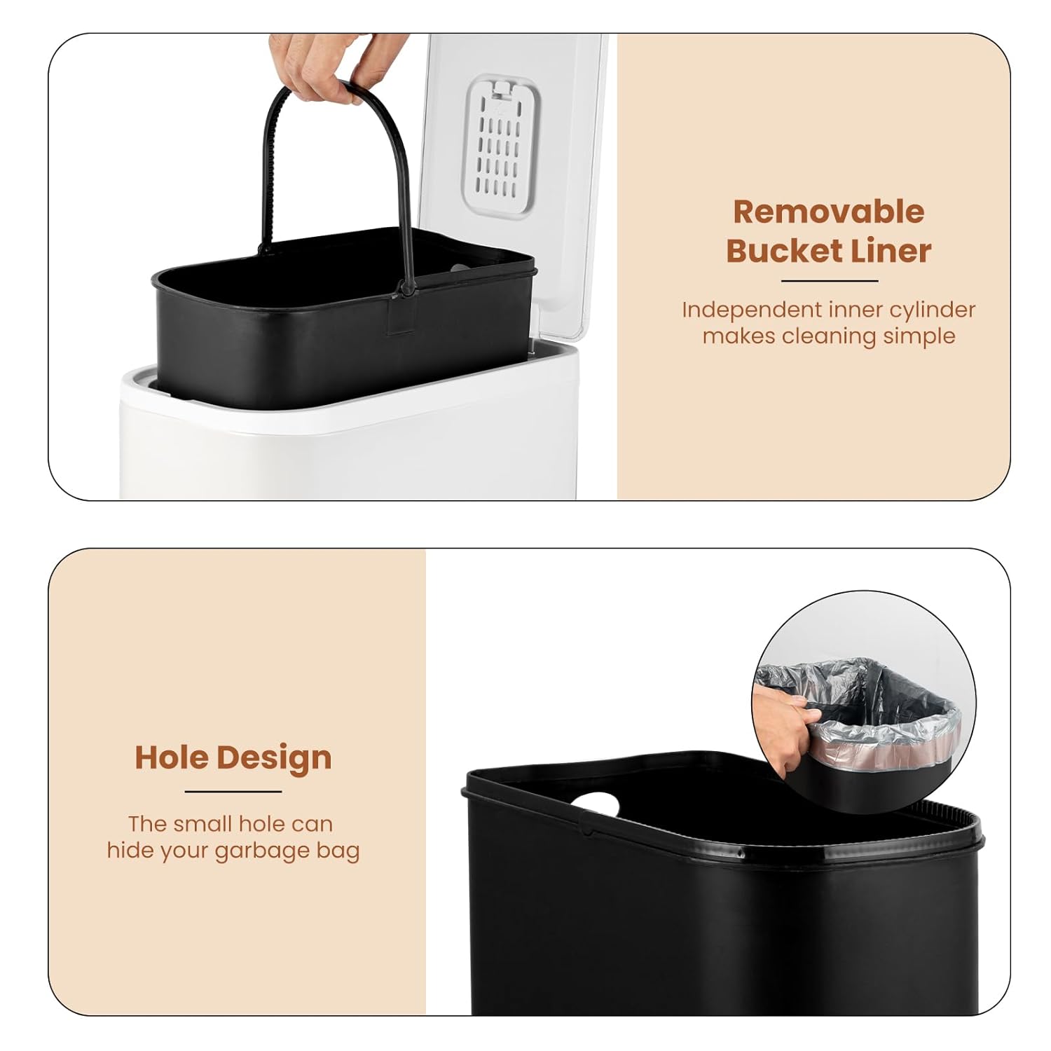 • Removable Plastic Inner Bucket: The bin comes with a removable plastic inner bucket, making it convenient to empty and clean. You can easily take out the inner bucket to dispose of the garbage.