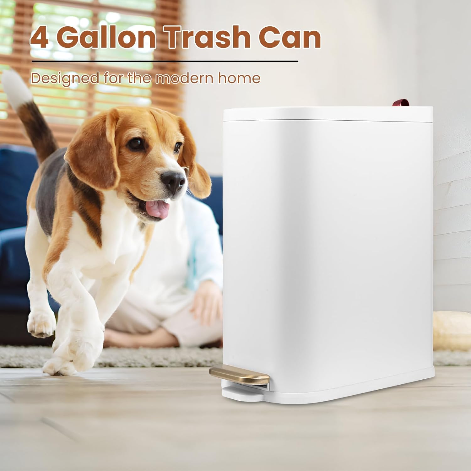 BETHEBEST Bathroom Trash Can with Lid,Stainless Steel Garbage Can with Removable Inner Bucket,Soft Close,Step Pedal,15 Liter/4 Gallon Trash Can for Bathroom,Bedroom,Kicthen,Office(White)