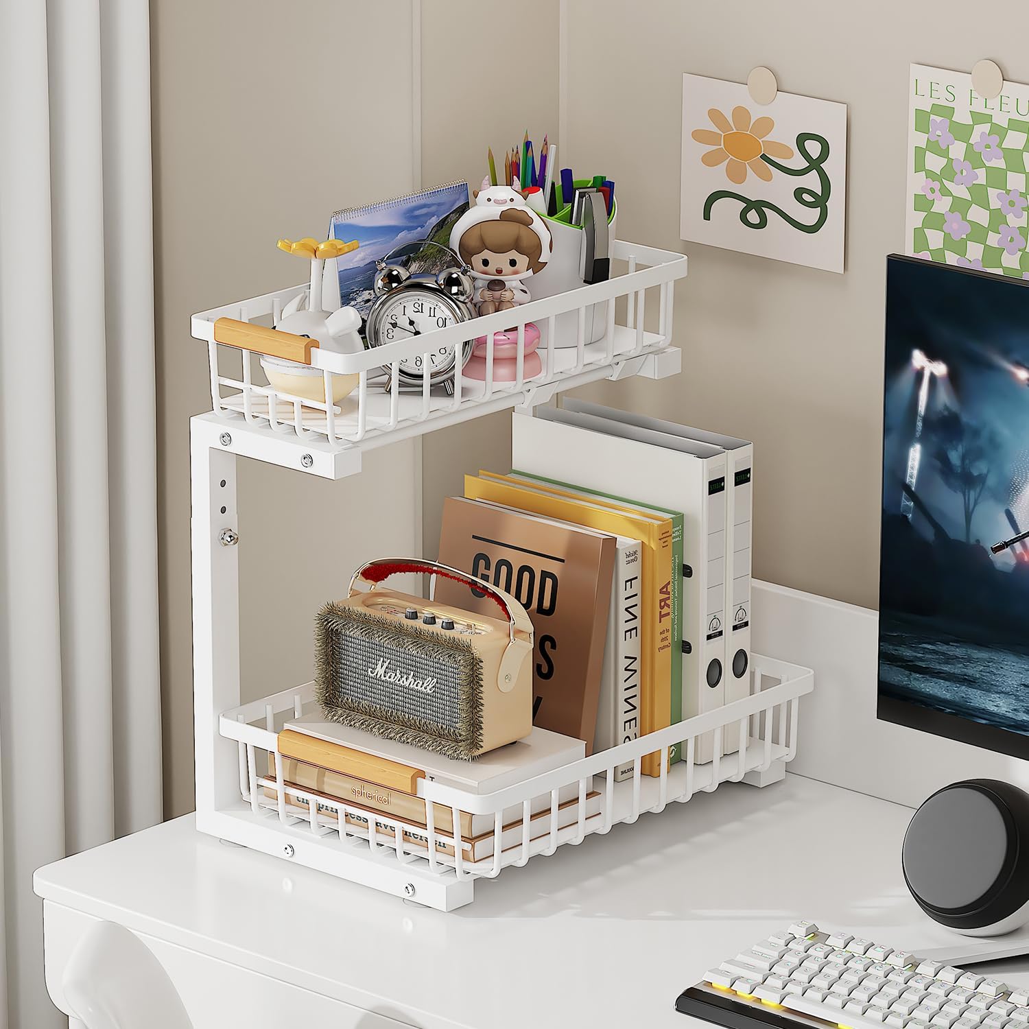 2-Tier Slide Out Under Sink Organizer – 2-Tier Pull-Out Storage Rack, Bathroom organizers and storage for Kitchen and Bathroom, Space-Saving Cabinet Organizer, Rustproof,(White)(2 Pack)
