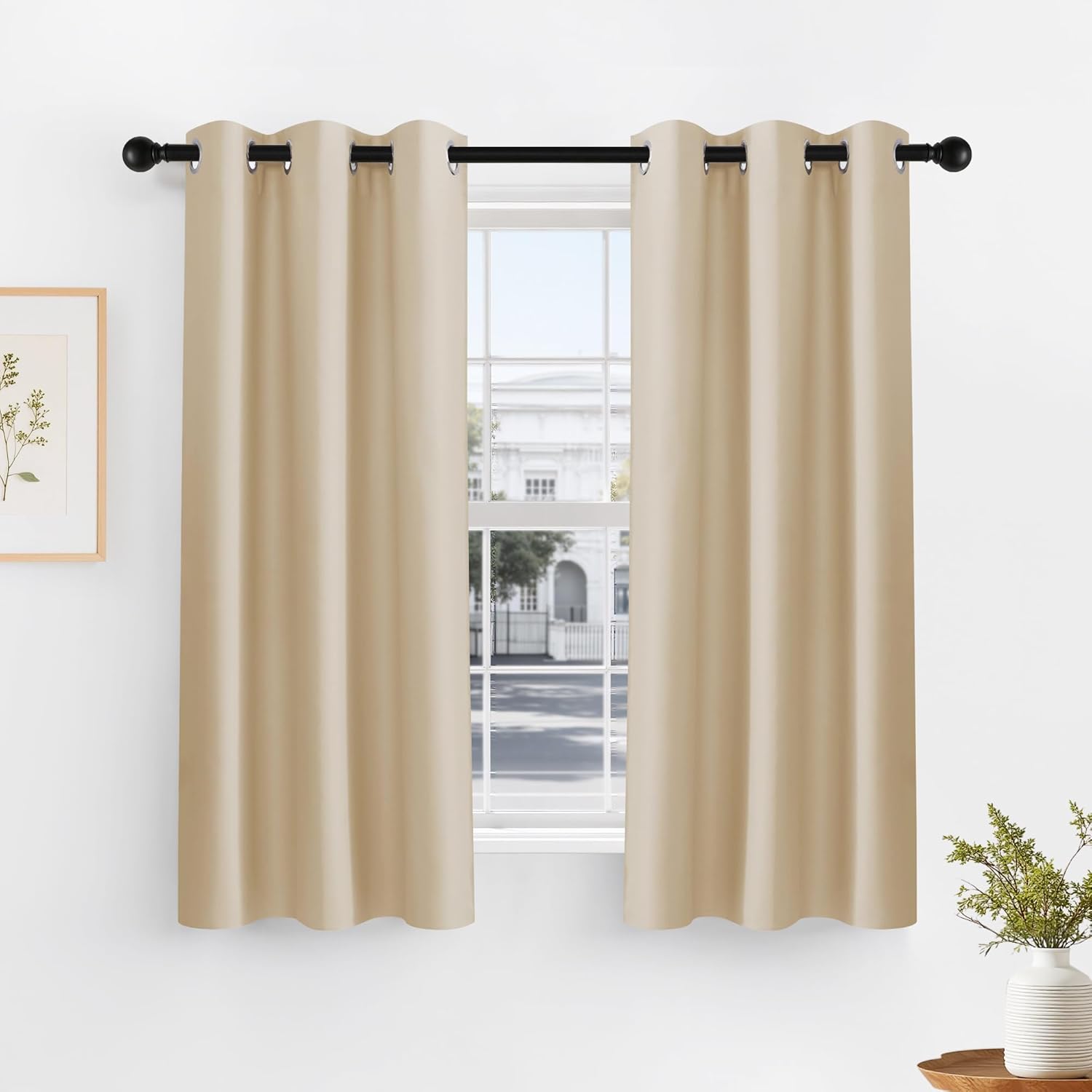 PONY DANCE Biscotti Beige Short Blackout Curtains for Kitchen 45 Inch Length, Thermal Insulated Grommet Curtains for Bedroom, Black Out Drapes for Bathroom Small Window (2 Panels Set, 34 inches Wide)