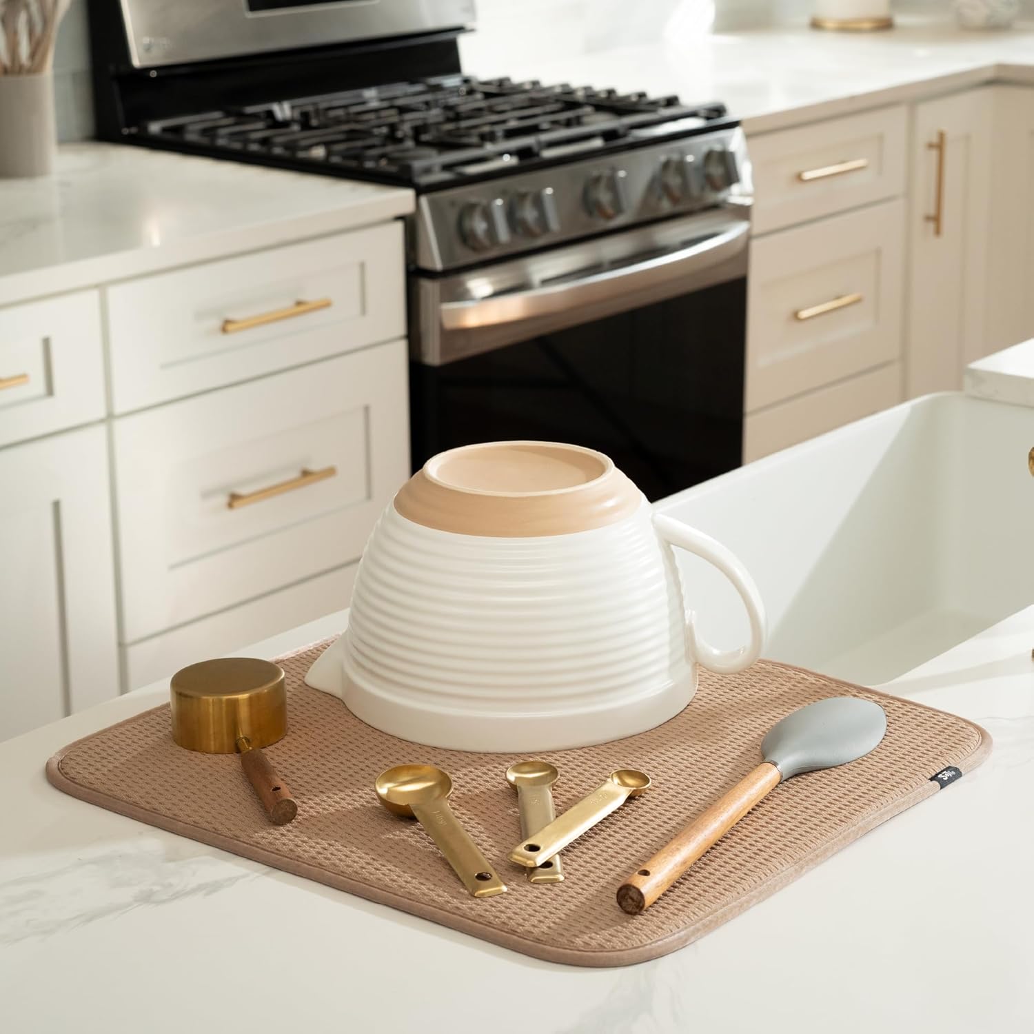• Dish drying mats for kitchen counter are reusable, machine washable, and easy to store for kitchen organization; durable construction will not chip or break like a stone dish drying mat for kitchen