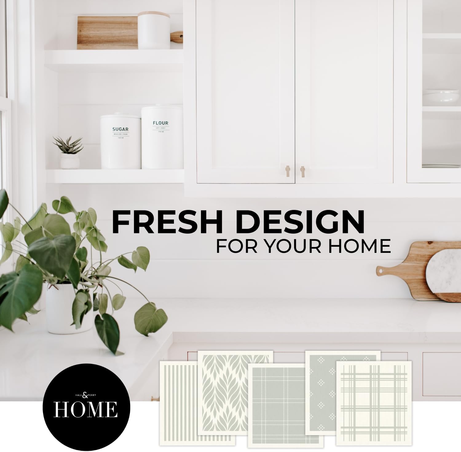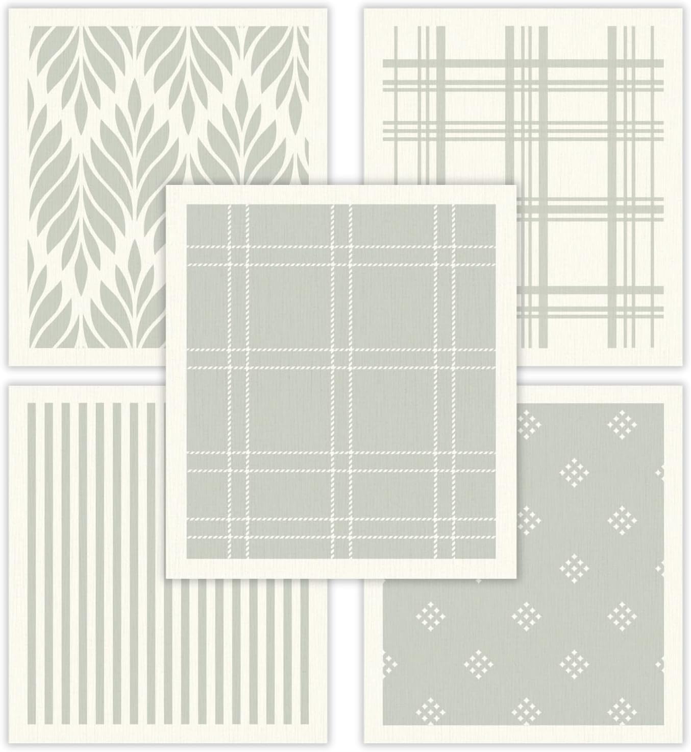 • Stylish Neutral Designs – A modern mix of soft gray/tan (greige) floral and stripe patterns that complement any kitchen decor while adding a touch of elegance to your cleaning routine.