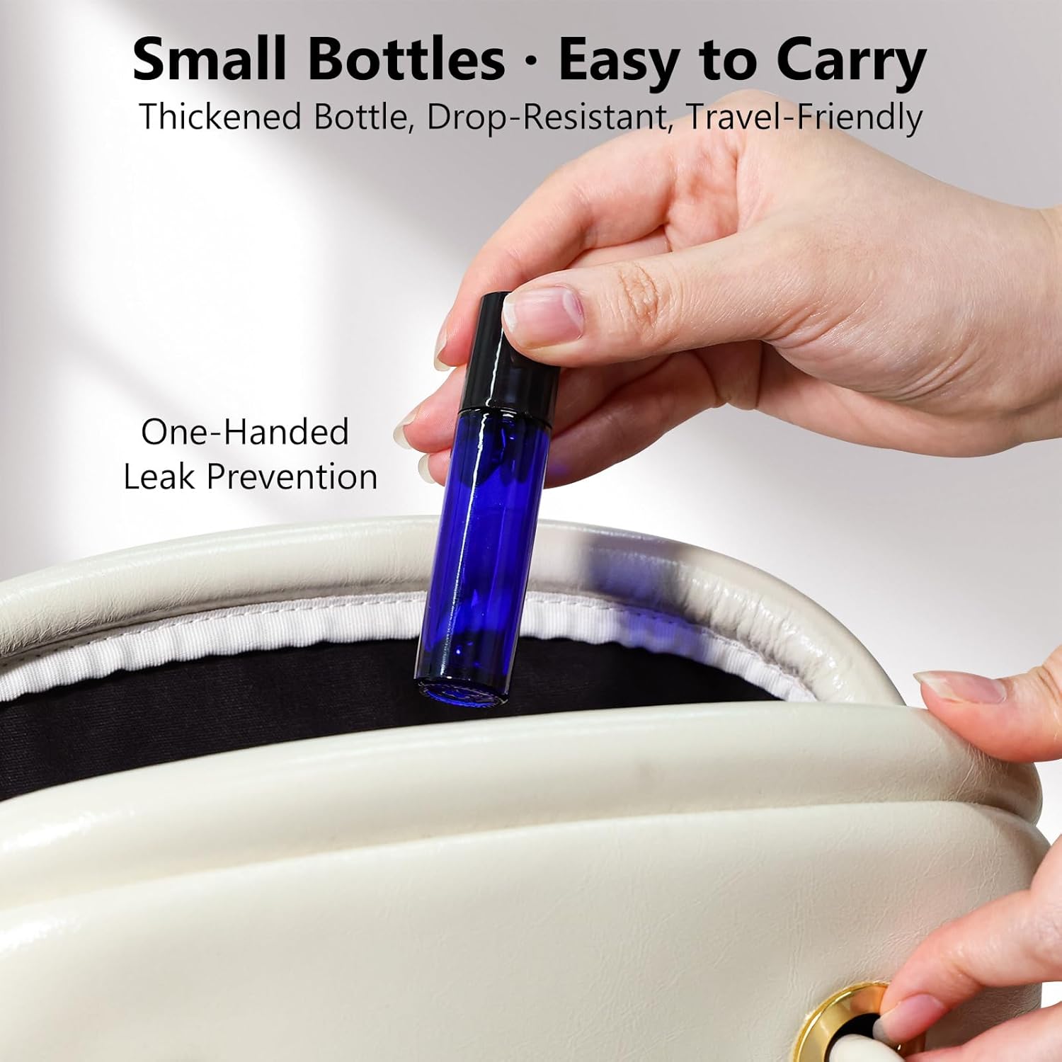 • Lightweight & Portable: These blue roller bottles for essential oils are designed with portability in mind. They fit easily into your purse, gym bag, or travel kit, making them the perfect travel essentials for your favorite oils, perfumes, or skincare blends. Enjoy aromatherapy or skin care treatments on the go—without worrying about leaks or spills.