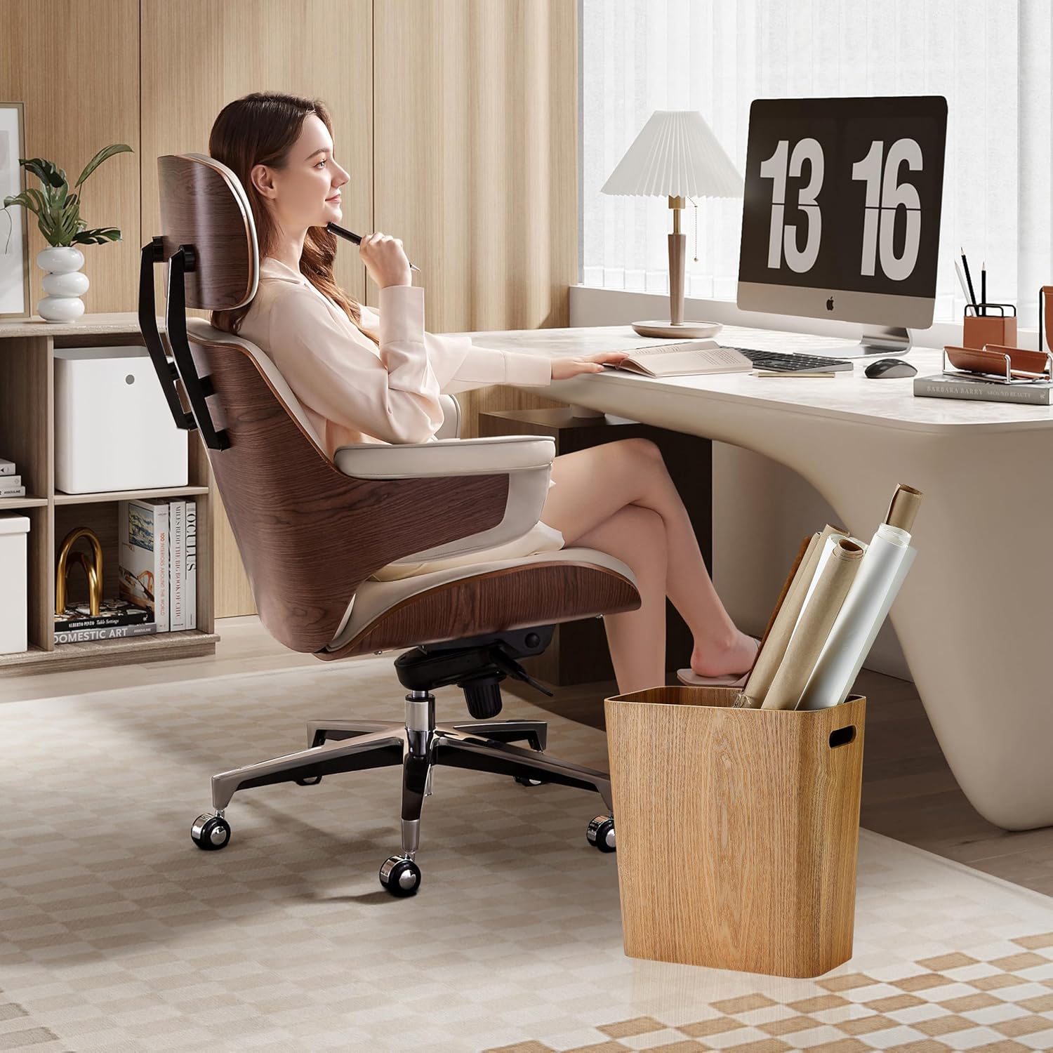 • Space Saving Under Desk Fit: At just 11.2" diameter x 12" height, this lightweight wood trash can tucks neatly under desks, nightstands, or in tight corners without sacrificing capacity (2.5 gallons).