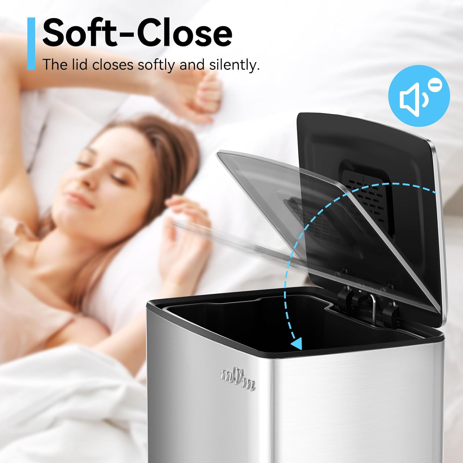 • Odor seal: The MVM trash bin is equipped with a carbon fiber filter that absorbs and neutralizes odors inside the bin, and the lid closes tightly to prevent odors from escaping.