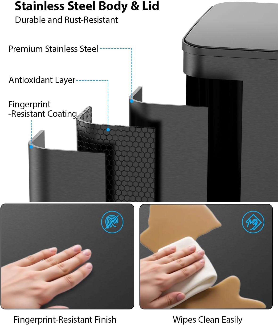• Stainless Steel Construction: Lovewind dual trash can is made from high-quality stainless steel, making it a long-lasting addition to your kitchen and easy to clean