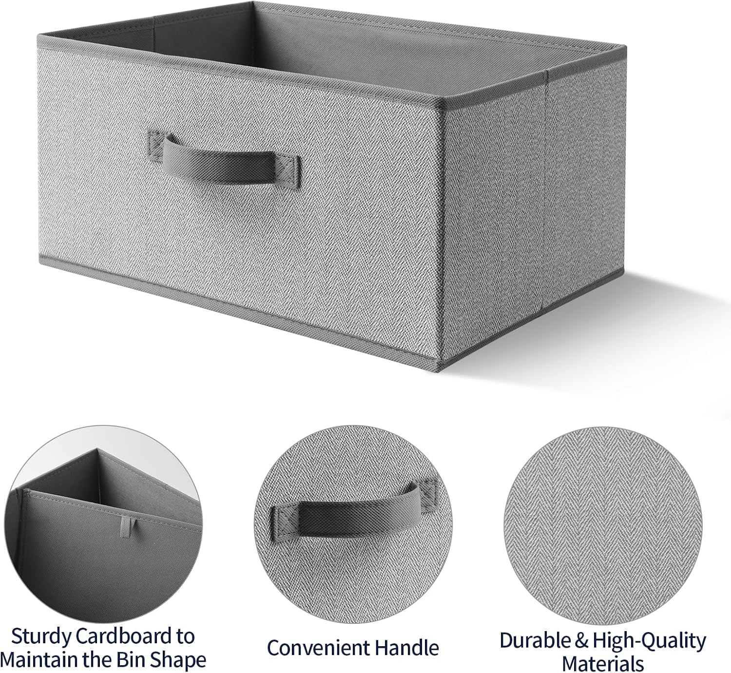 Storage Baskets, 15.7 Inch Woven Fabric Bins, Storage Cubes with Reinforced Handles, Organizer Bins for Closet Shelves, Foldable, for Toys, Clothes, Natural Beige (4PCS/Grey-15.7*11*7.8inch)