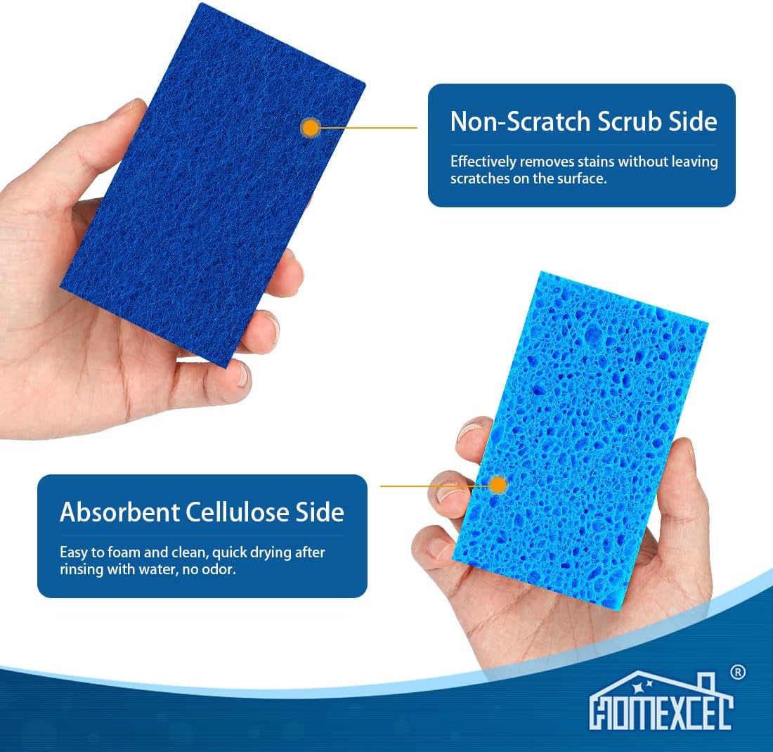 • Upgraded 3-Layer Sponge Design: Upgraded triple-layer construction combines a non-scratch scrub layer for gentle cleaning, A flexible foam core that provides a comfortable grip to clean various surfaces, and an absorbent cellulose sponge layer that dries quickly and wipes efficiently