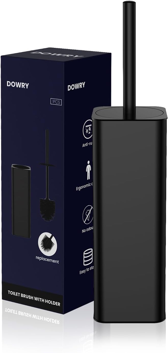 DOWRY Toilet Bowl Brush and Holder for Bathroom Storage Organization Deep Cleaning Covered Brush Cleaner Black Toilet Brush with 2 Brush Holders,Black Square
