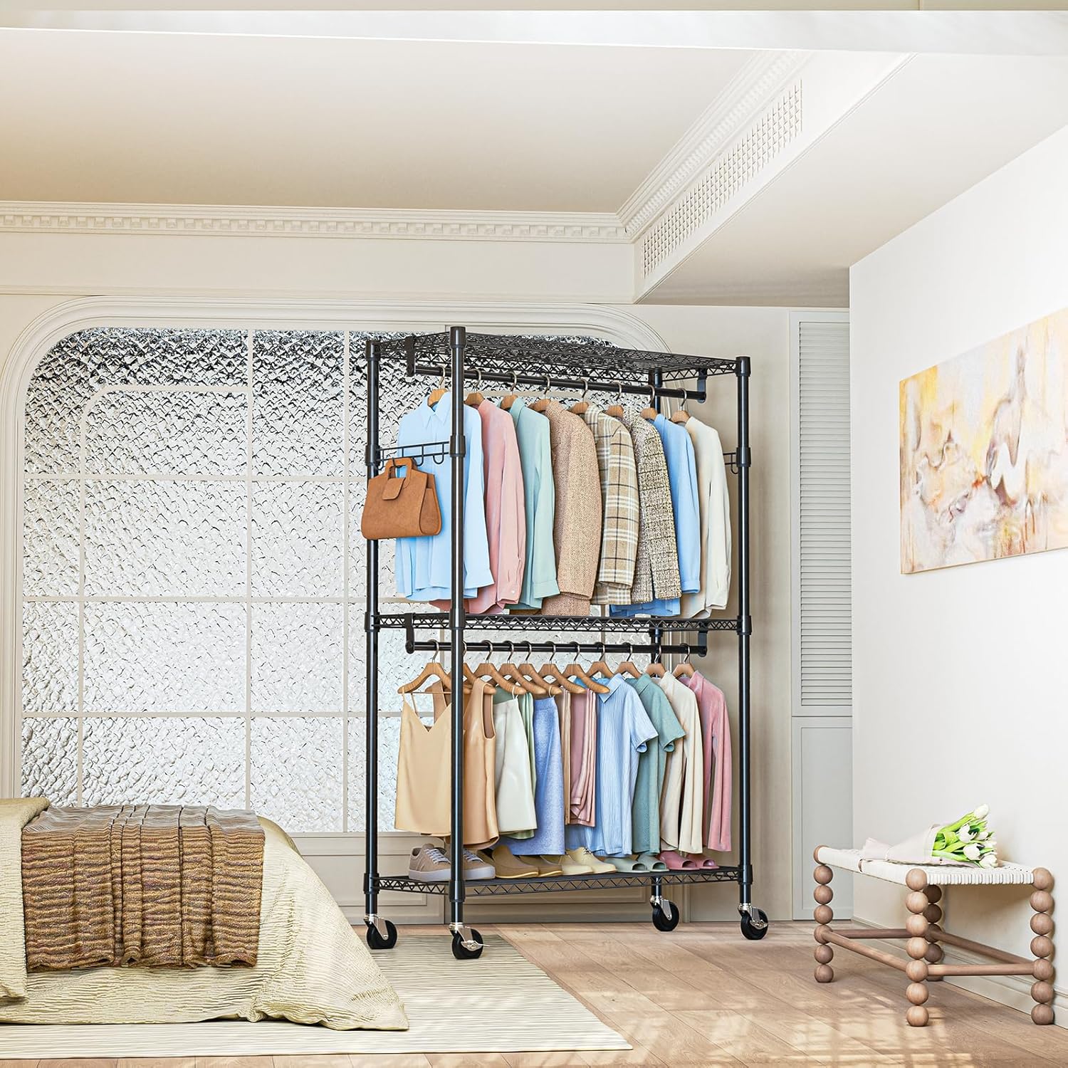• 【Durable & Heavy Duty Construction】 Made from premium carbon steel with anti-rust coating and sturdy frame, this garment rack delivers exceptional stability and durability for heavy loads.
