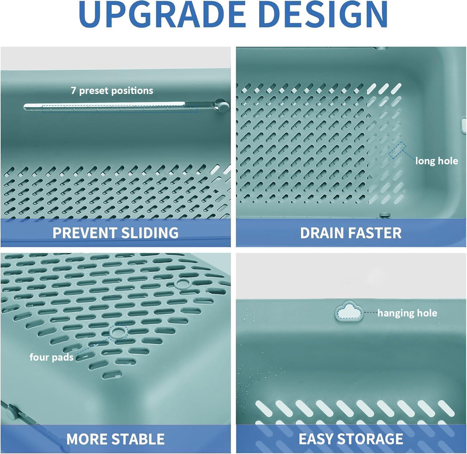 • LASSHSWA upgrade the colander, 7 preset positions - PREVENT SLIDING, long hole - DRAIN FASTER, four pads - MORE STABLE, hanging hole - EASY STORAGE.