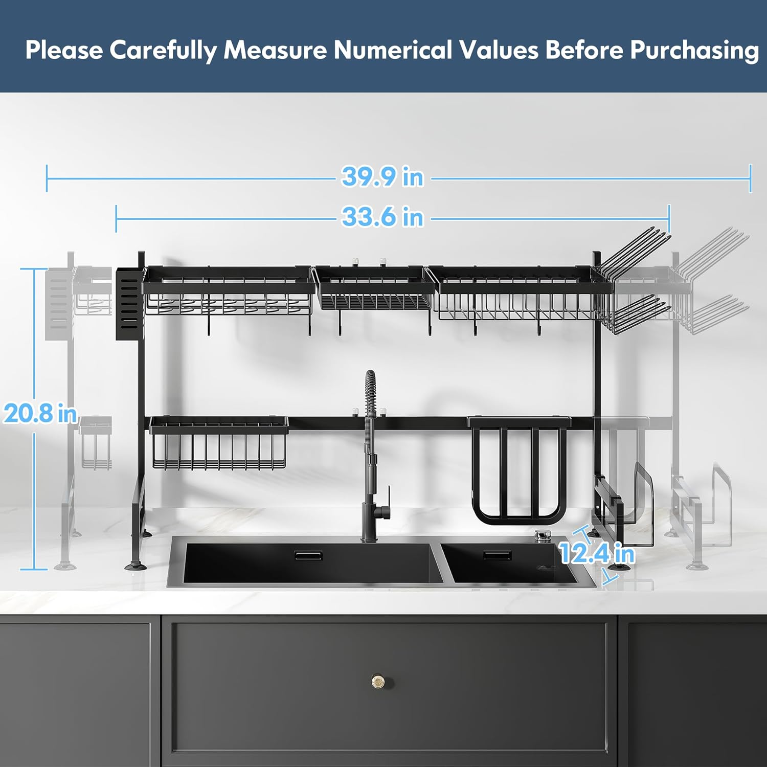 - 🔄 Expandable Design for Custom Fit: Adjust the over sink dish drying rack width effortlessly to span most standard single or double sinks, adapting seamlessly to your kitchen layout. The dish drain modular design allows rearranging tiers and accessories to prioritize space for tall glasses, wide pans, or cleaning tools, maximizing vertical storage above the sink