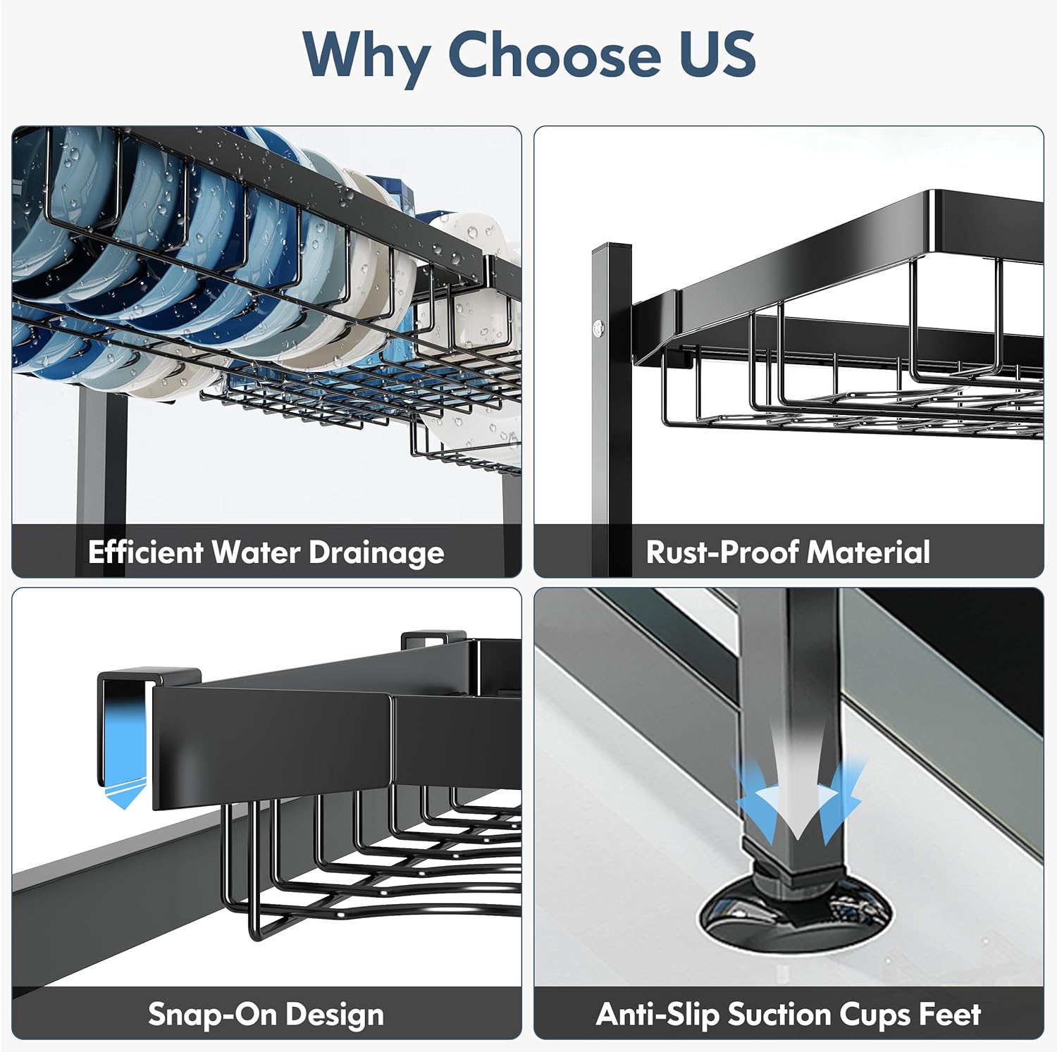 - 💧 Leak Free Water Management: Flat, level shelves let gravity channel drips directly into the sink, eliminating puddles on countertops. The kitchen dish drying rack rust proof grid prevents water pooling, while smooth edges protect dishes from scratches. Wipe clean with a cloth, no disassembly needed for routine maintenance