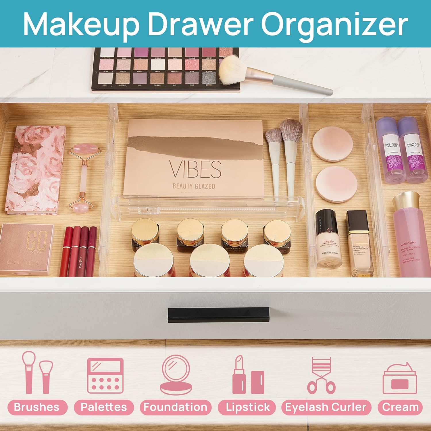 Vtopmart 4 Pack Shallow Drawer Dividers, 2.36" High 12.67"-21.14" Adjustable Expandable Kitchen Drawer Organizer, Clear Plastic Organizer Separators for Flatware, Utensil, Cutlery, Underwear, Clothes
