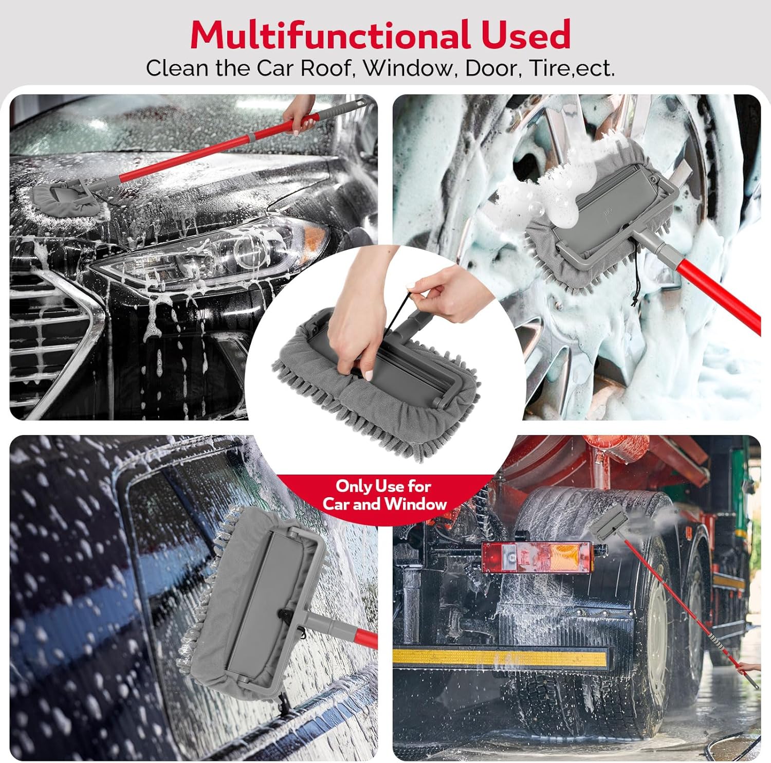 Ceiling Fan Cleaner Duster , 75‘’ Extendable Long Handle Ceiling Fan Blade Cleaning Tool, Reusable Chenille & Microfiber Mop Head for Dusting Ceiling Fan Baseboard Wall Floor,car wash mop