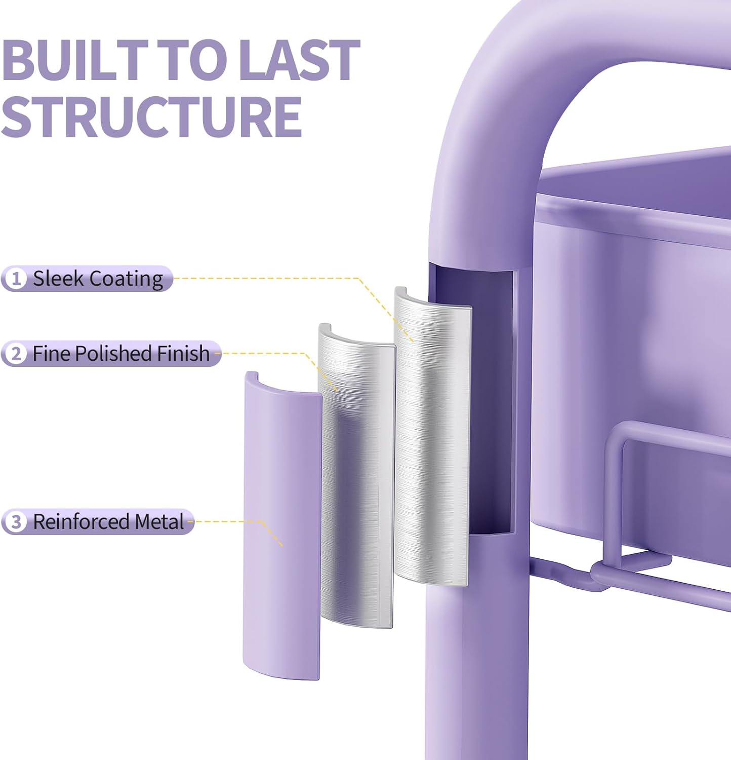 - Durable Heavy-Duty Metal Construction – Built to last, this rolling cart features 3 sturdy metal baskets and 4 durable wheels. The sleek, coated metal poles ensure long-lasting use, making it ideal for heavy-duty storage in any room, including as a bathroom cart or pantry organizer.