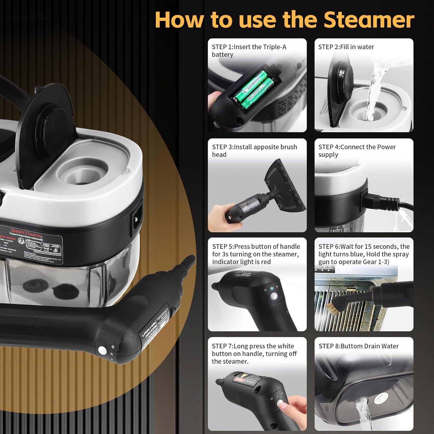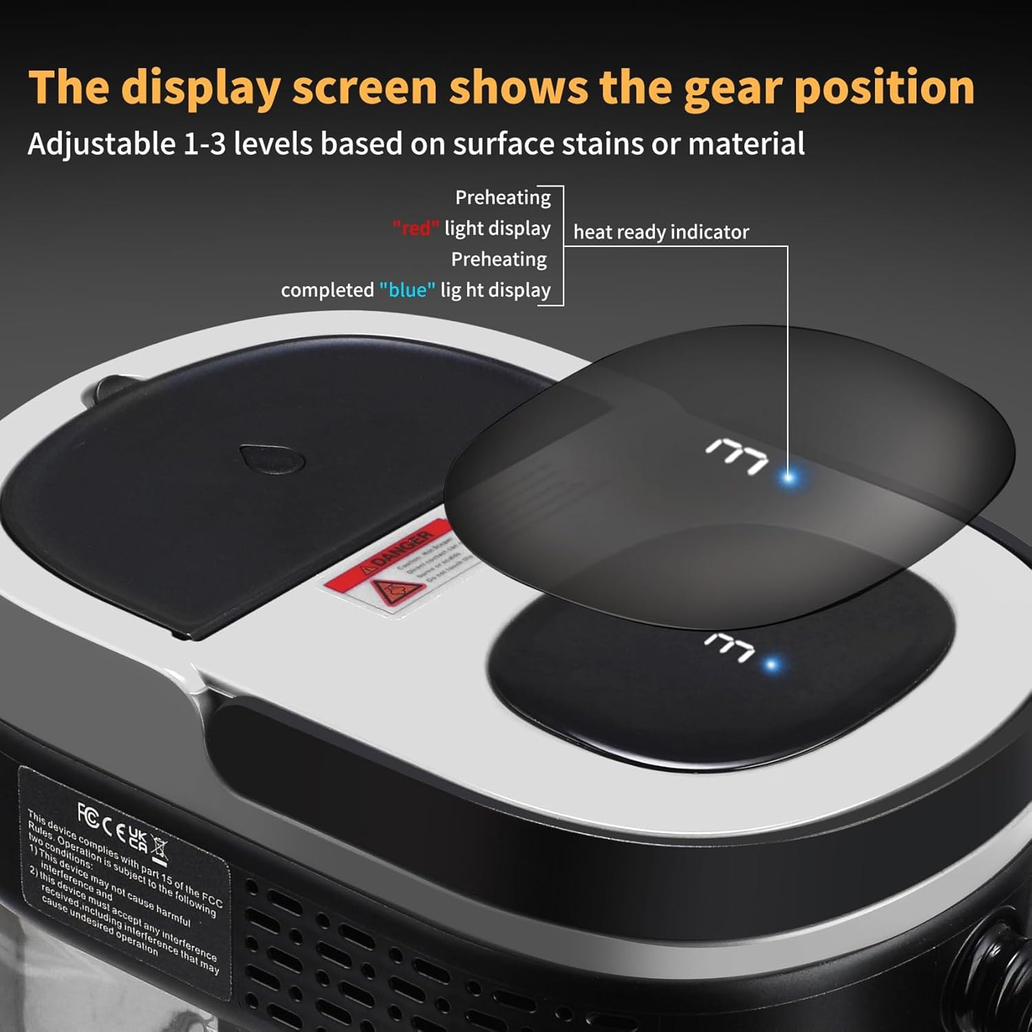 • 【High-pressure steamer】Rapidly heating up within 10 seconds, the temperature can reach 221°F/105°C and the steam pressure reaches 3 Bar.strong steam power for deep and effective cleaning,effectively remove stubborn greasy dirt and stains.