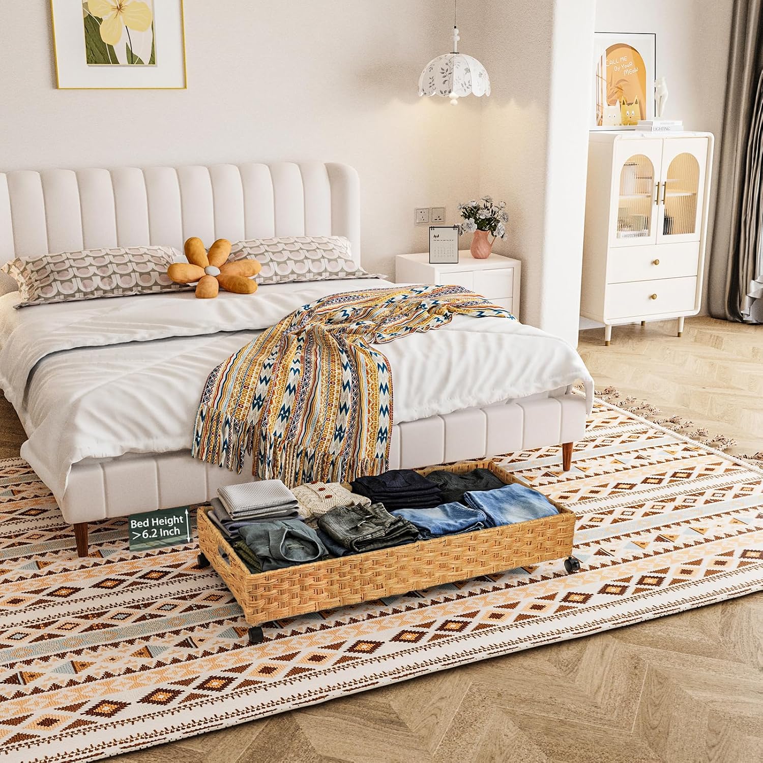 • BREATHABLE & DURABLE: Our under bed storage on wheels is made of handmade rattan weaving, which ensures air ventilation to keep your seasonal garments dry and fresh. The toughness of rattan makes underbed storage more durable.
