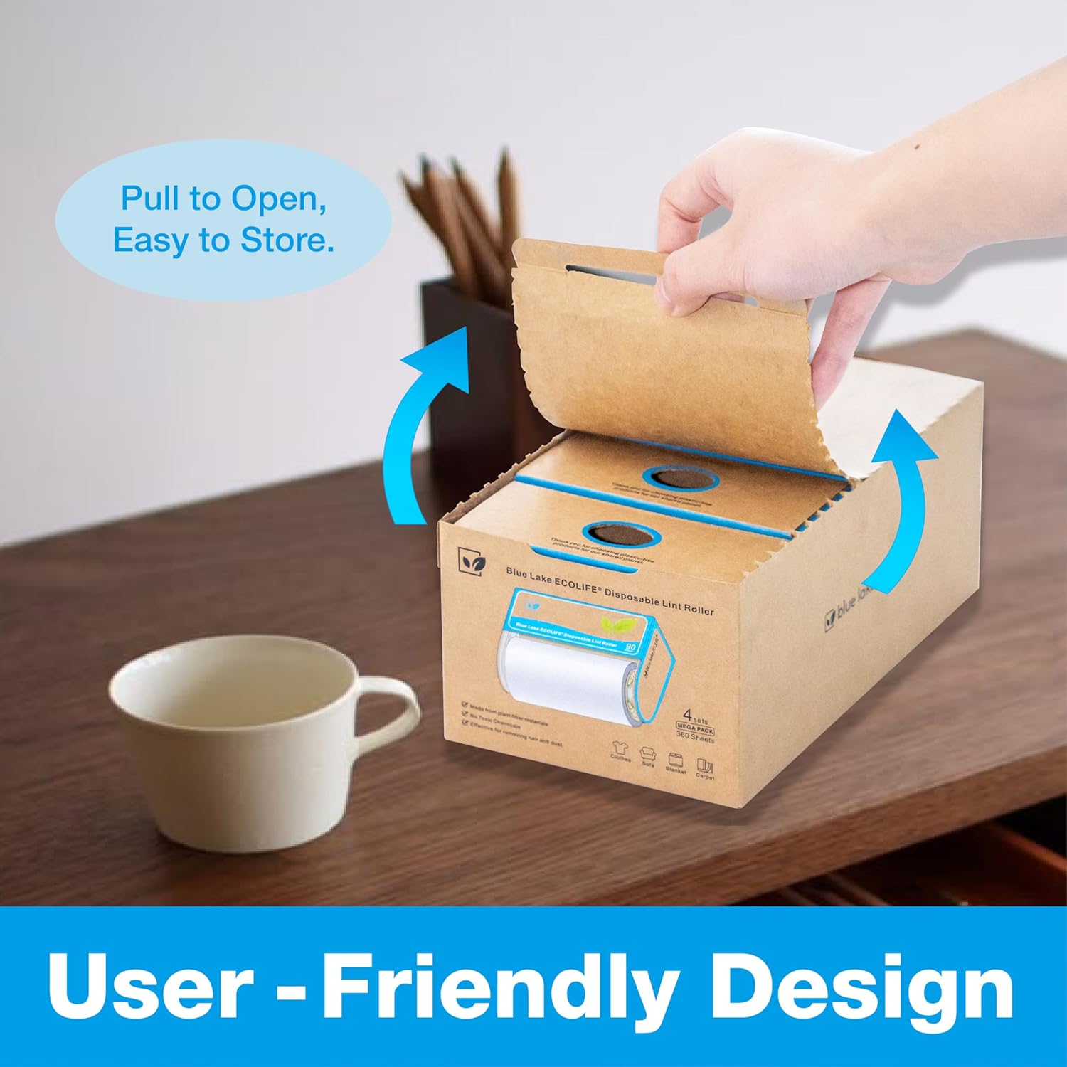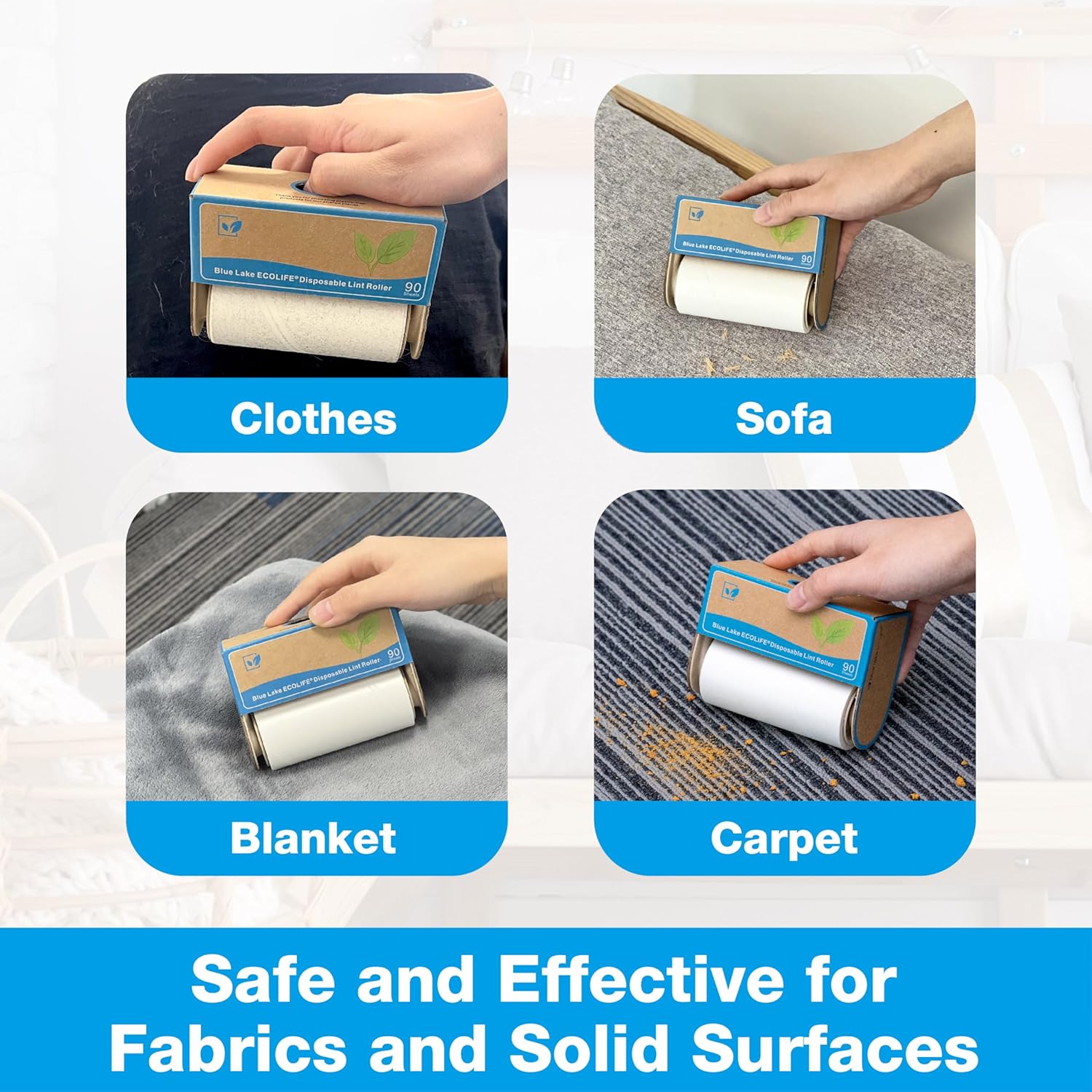 Blue Lake ECOLIFE Plastic-Free Lint Roller โ€“ 4-Pack (360 Sheets) | Extra Sticky & Eco-Lint Remover| Ideal for Clothes, Furniture & Carpet(4 Pack-360 Sheets)