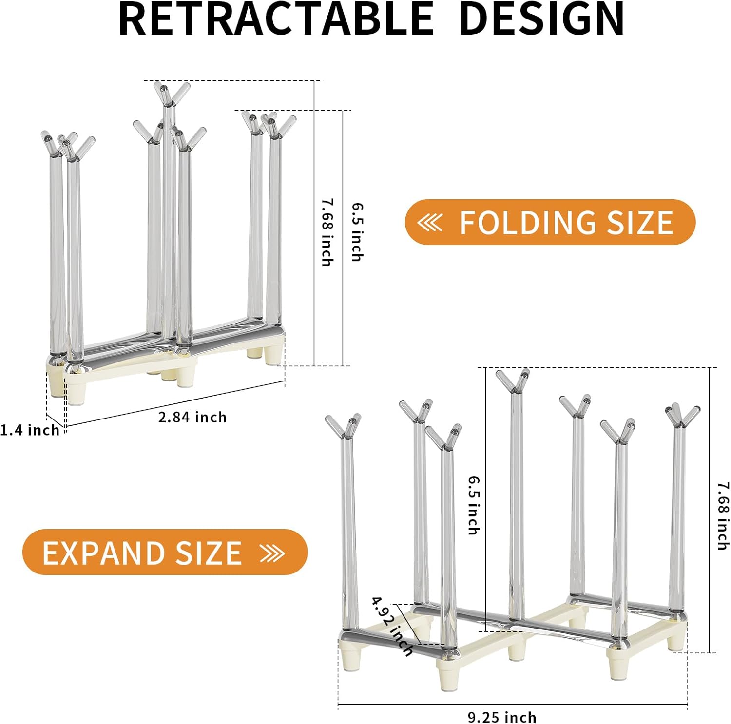 Marbrasse Retractable Cup Drying Rack, Drinking Glass and Sports Bottle Drainer Stand, Plastic Bag Dryer with Non-Slip Bottom for Kitchen Countertop, 2p - White