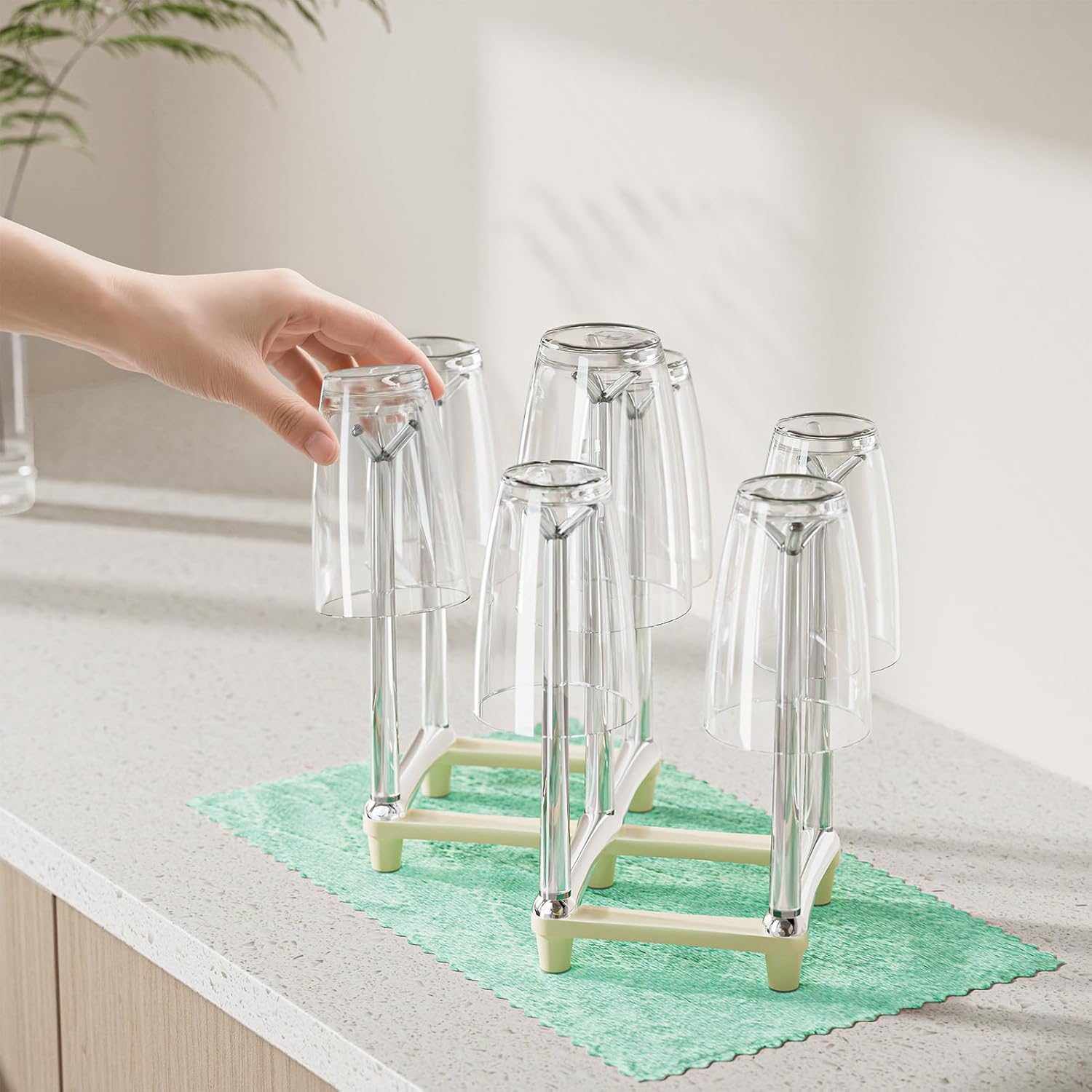 • PREMIUM MATERIAL - Foldable cups drying rack made of high quality PP material, durable. Comes with an absorbent cloth. Protect your cutlery from scratches.