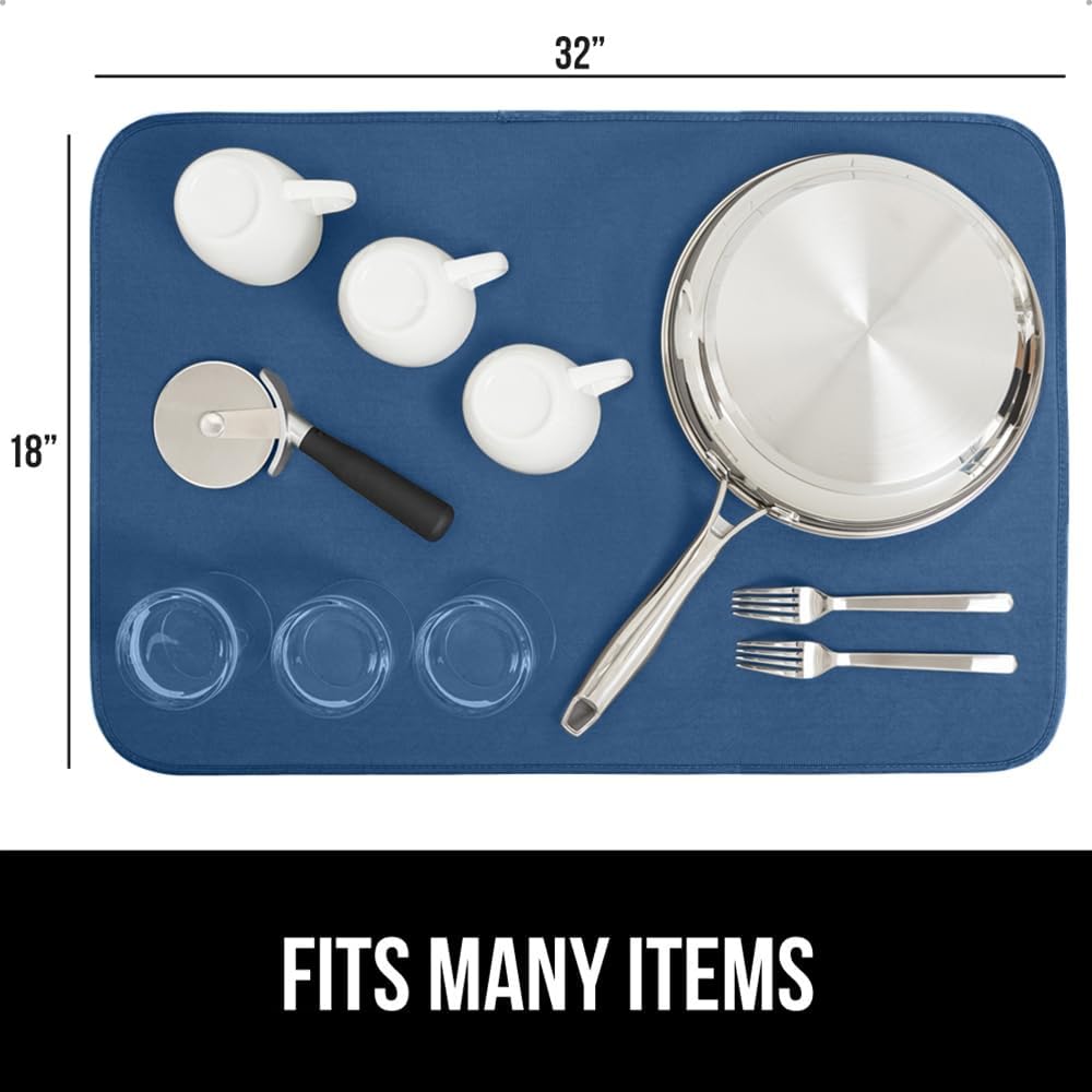 GORILLA GRIP Ultra Water Absorbent Microfiber Dish Drying Mat, 18x32, Quick Dry Thick Mesh, Slip Resistant Pad for Sink Dishes or Under Rack, Kitchen Counter Accessories, Machine Wash, Blue