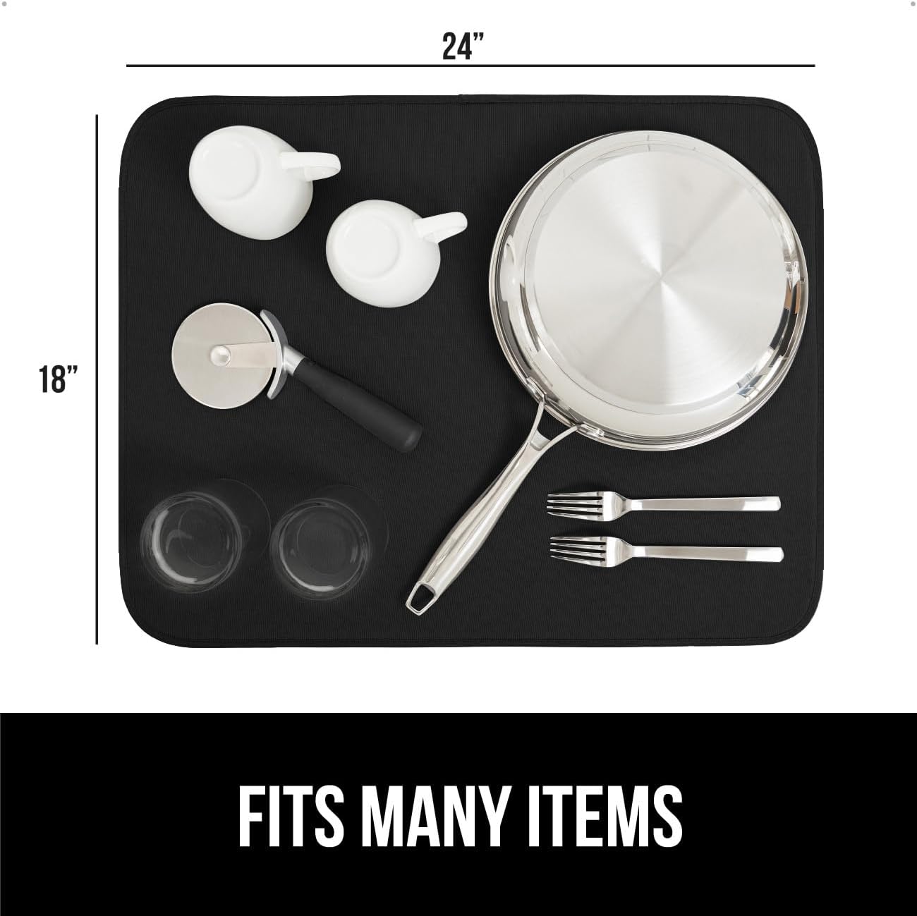 GORILLA GRIP Ultra Water Absorbent Microfiber Dish Drying Mat, 18x24, Quick Dry Thick Mesh, Slip Resistant Pad for Sink Dishes or Under Rack, Kitchen Counter Accessories, Machine Wash, 2 Pack Black
