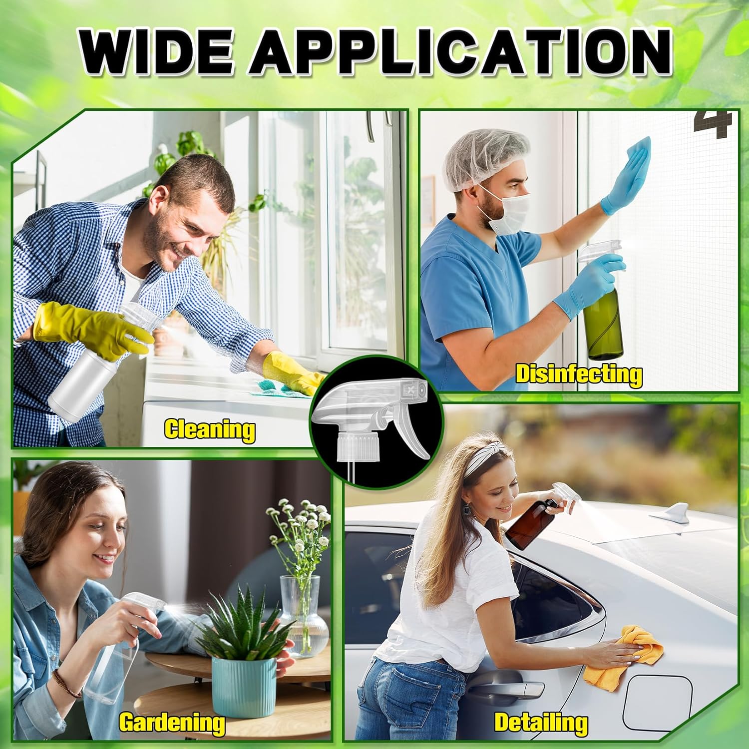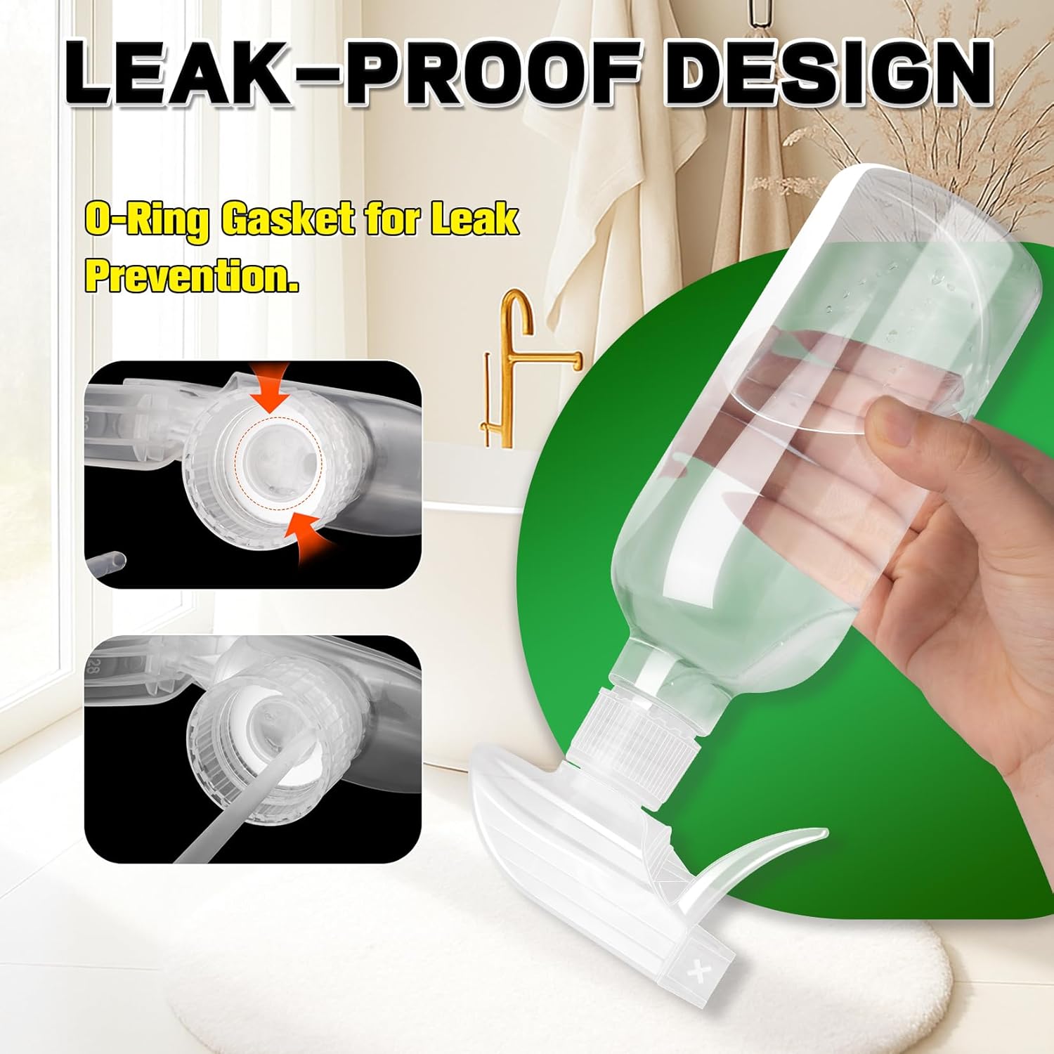 • Leak-Proof Design: Built with leak-proof gaskets and precision threading, our trigger sprayer heads create a tight, secure seal that helps prevent drips, leaks, and unnecessary waste during use. When not in use, twist the nozzle to the off mode to avoid accidental spraying and ensure clean, dry storage