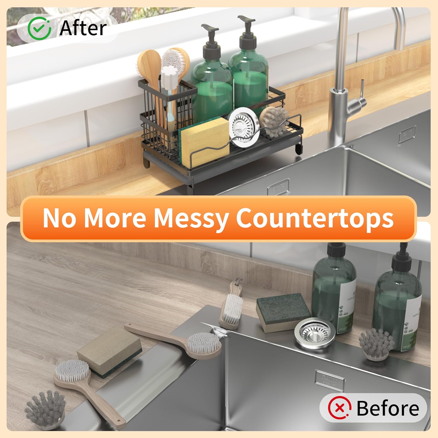 • 【Premium Stainless Steel】- Our kitchen sink organizer made from Premium stainless steel with a protective coating. this kitchen sink caddy resists rust and damage, ensuring long-term durability in wet environments.