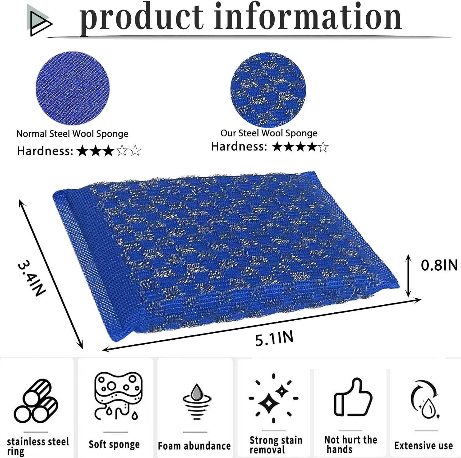 Steel Wool Scrubbers Dish Kitchen Sponges Heavy-Duty Kitchen Steel Scrub Sponges,Multi-Functional Stubborn Stain Fast Cleaning Scrubber(6 Pack)