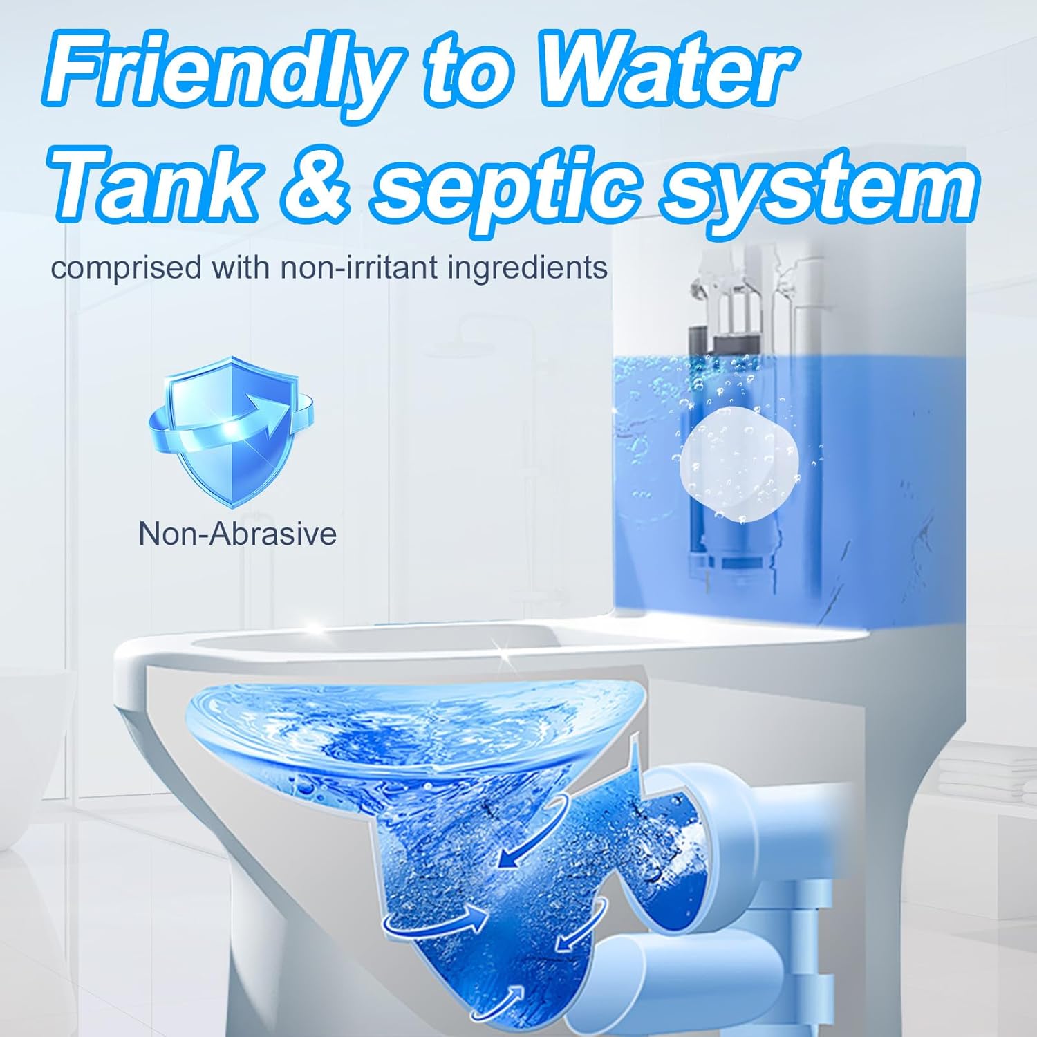 - EFFORTLESS "DROP & FORGET" CLEANING: Simply drop 1 tablet into the tank—it works automatically with every flush. Reduce the frequency of scrubbing, wiping, or manual cleaning required! Long term use can reduce scale deposition in hard water areas, keep the toilet glaze smooth, and reduce the difficulty of subsequent deep cleaning. Perfect for renters, vacation homes, or anyone seeking a hands-free solution.