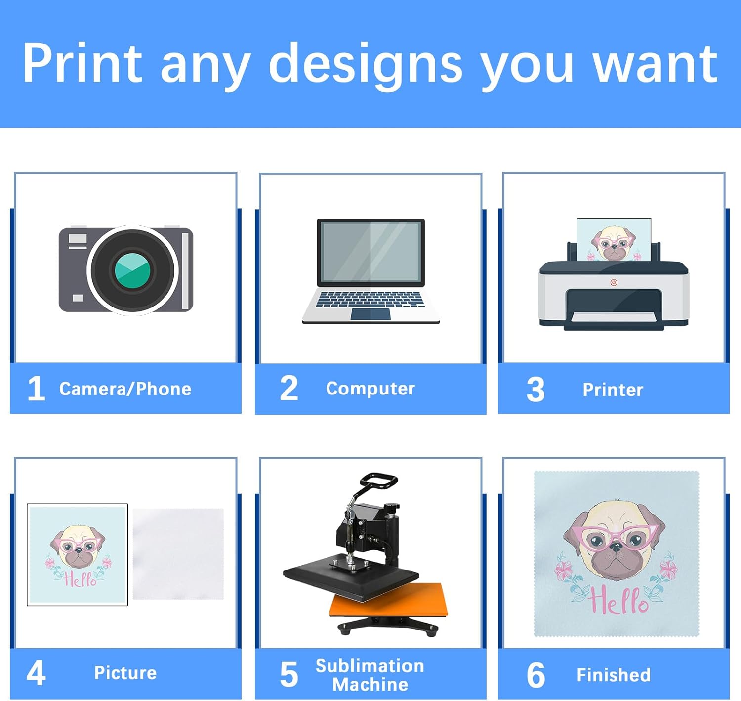 • DIY eyeglass cloths: These white eyeglass cloths are suitable for Sublimation, Screening, and Embroidery printing. You can print the logo and designs you want on them, and give them as gifts to your friends, family, or customers