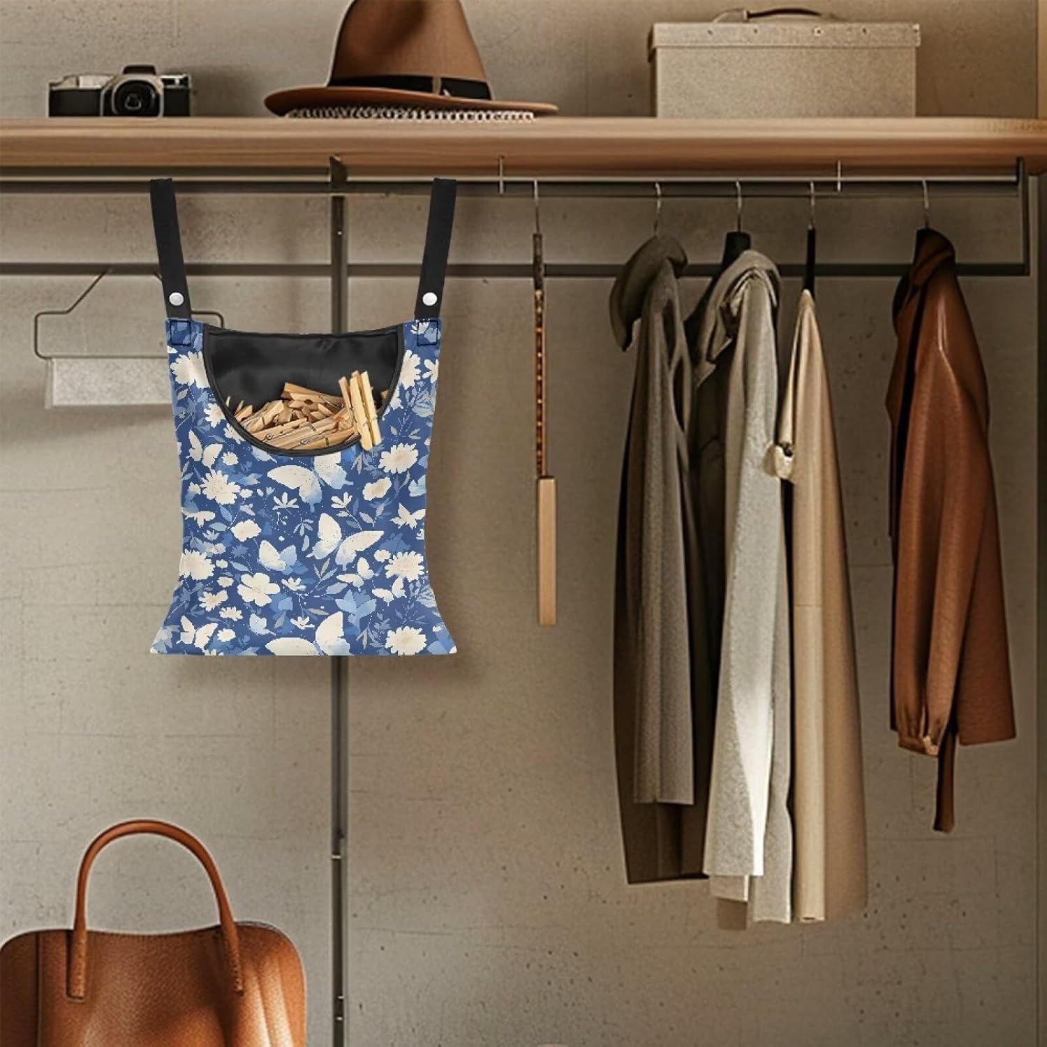 3 Pcs Butterfly and Floral Clothespin Bag with Large Opening Clothes Pins Holder Outdoor and Laundry Bag Hanging Fits for Clothesline Outdoor