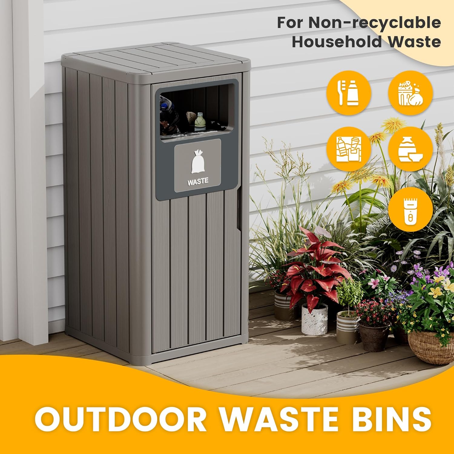 • Single Capacity - 16.6" x 16.6" x 35.4", compatible with 28 gallon trash bags-15" x 16" x 27", the outdoor trash can is suitable for storing indoor and outdoor trash and keeping the house and patio clean