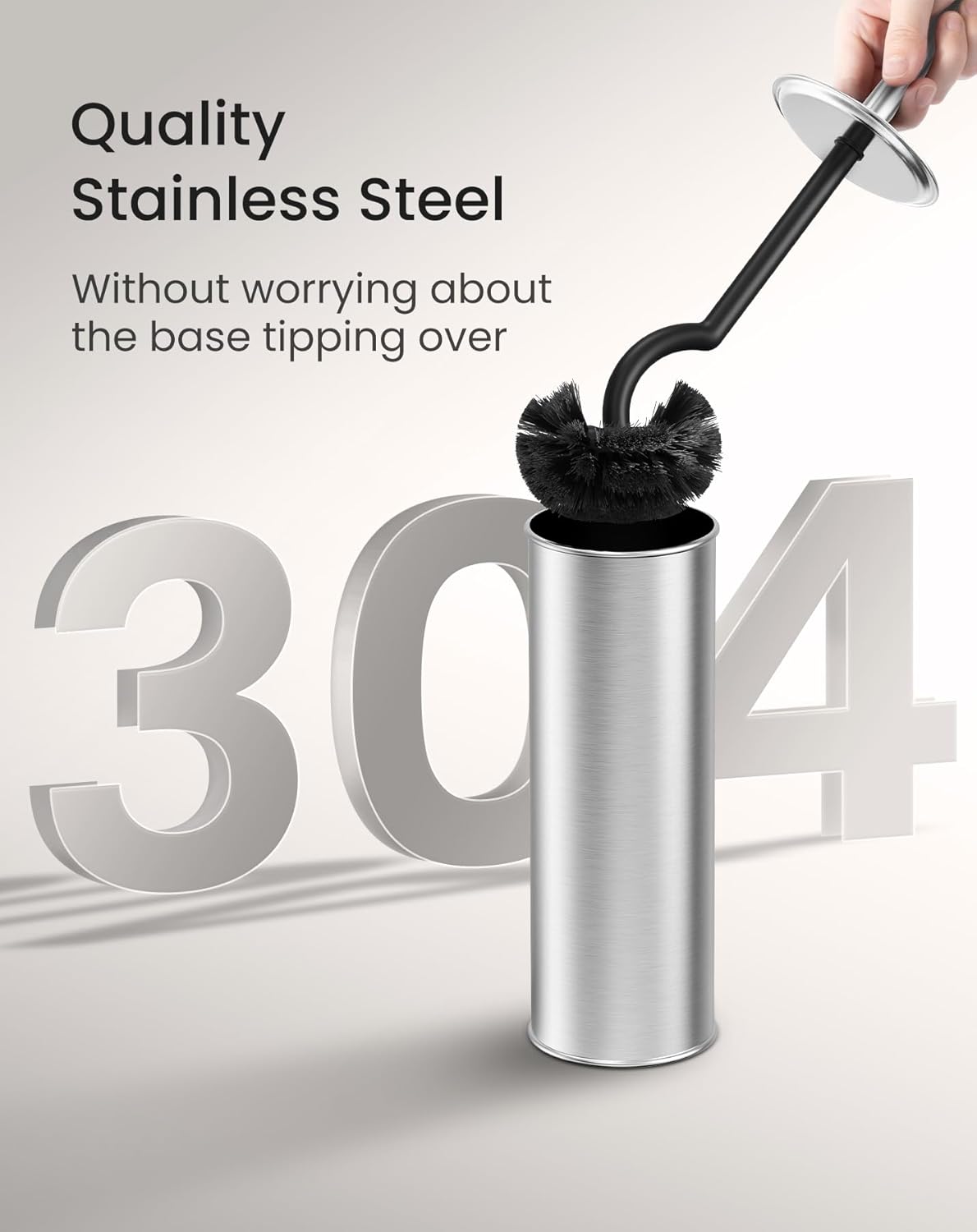 Cesun Toilet Brush and Holder Set - Curved Design Toilet Brush for Deep Cleaning Under Rim, 304 Stainless Steel Toilet Bowl Brush and Holder for Bathroom, Rv, Silver(2 Replaceable Brush Head Included)
