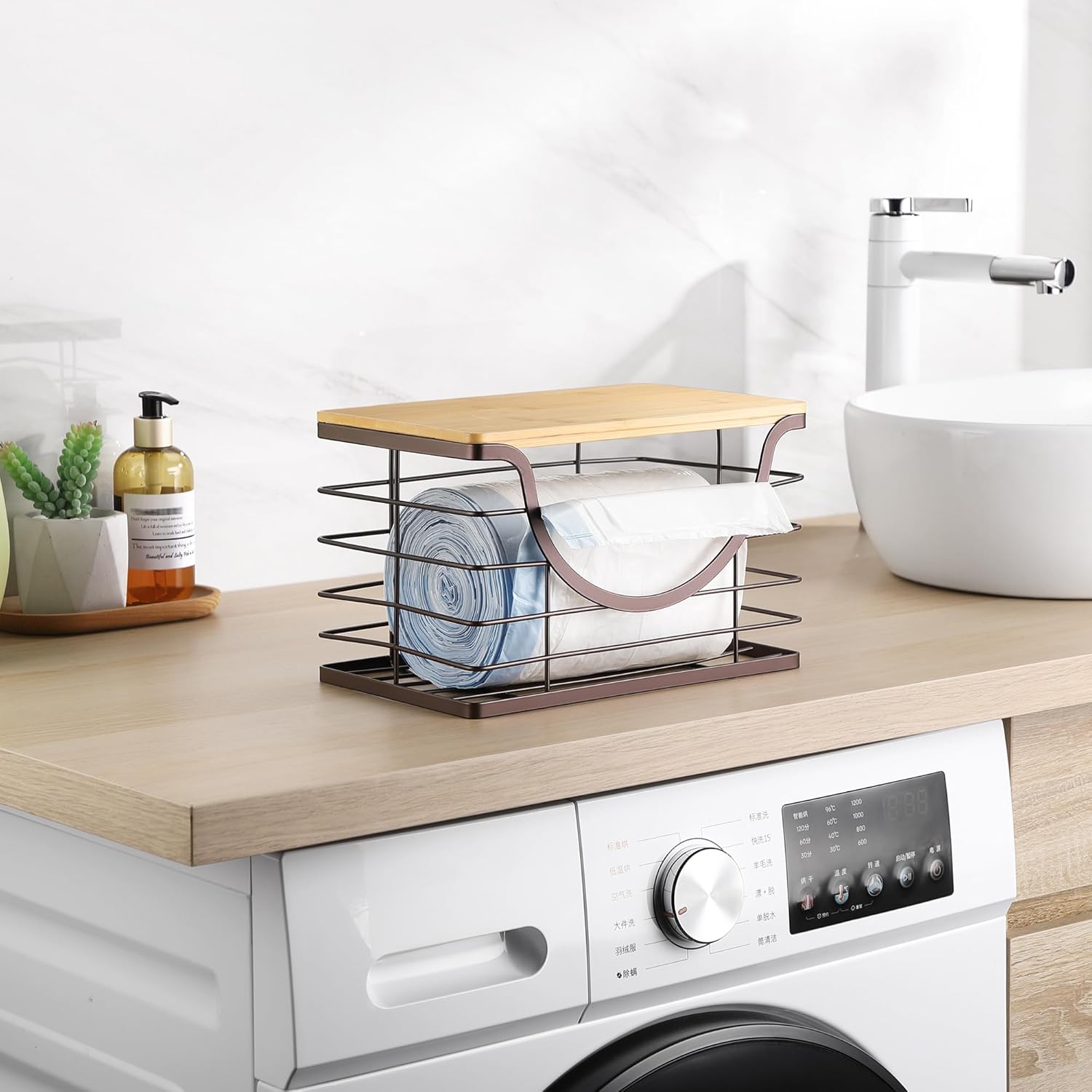 • Tidy and Organised Home - The Perfect Trash Bag Storage and Dispensing Solution! Stylish and minimalist rubbish bag organiser is more than just a trash bag dispenser wall mount, it looks more like a decorative piece. Make your home more organised and beautiful