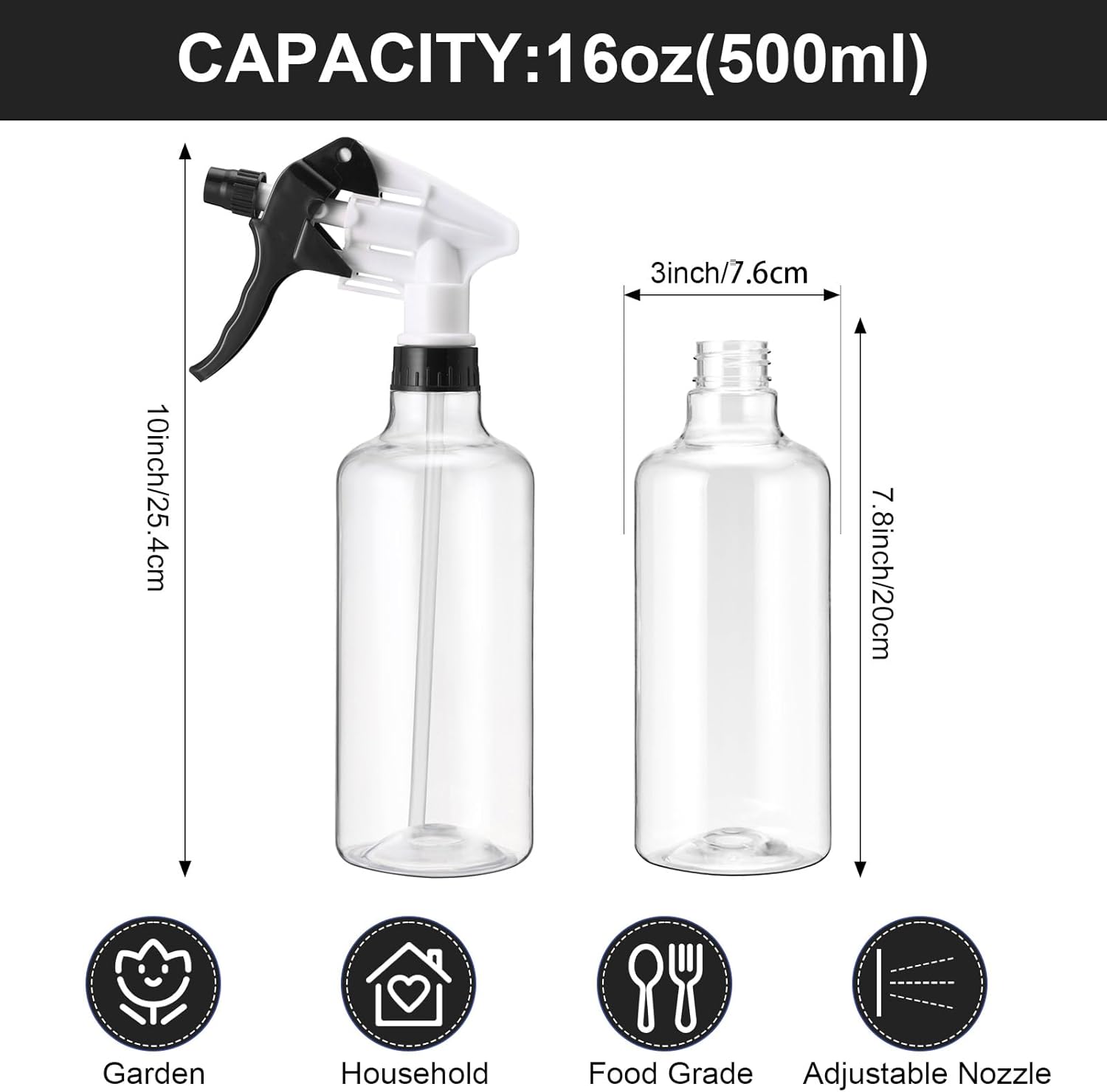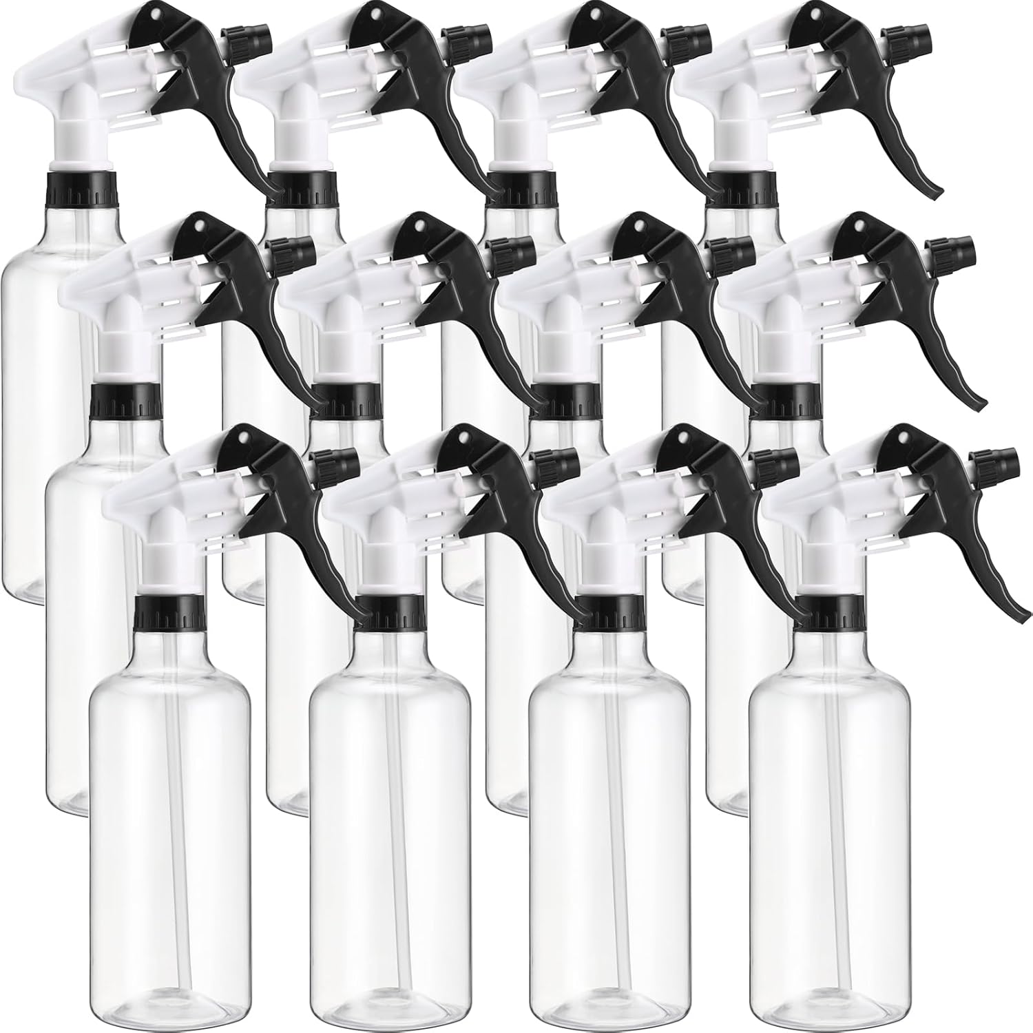 Eccliy 12 Pcs 16 Oz Plastic Spray Bottle, Adjustable Empty Reusable Sprayer for Cleaning, Planting, Water, Bathroom and Kitchen, BBQ, Commercial and Residential(Black,Clear)