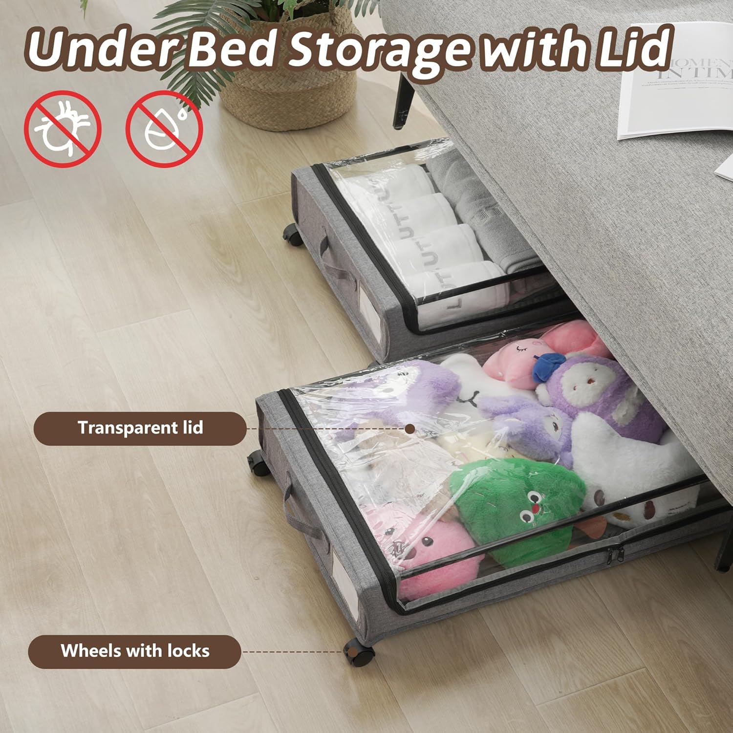 • 【Clear Lid Design for Instant Access】The under bed storage with lids features a transparent top and dual zippers. Instantly view contents like shoes, toys, or bedding without unzipping, while dust-proof fabric keeps items fresh.