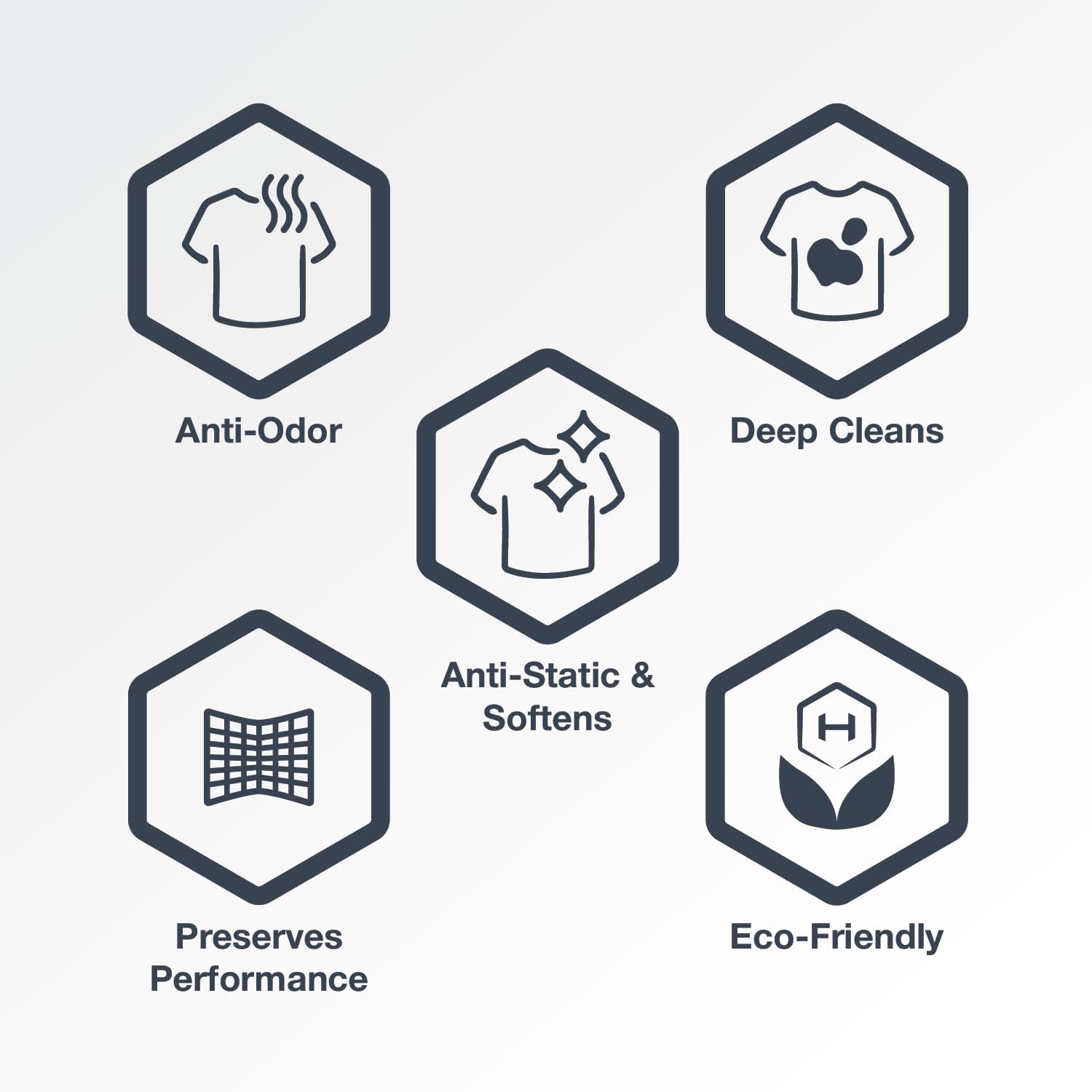 • POWERFUL LIQUID FORMULA: Traditional laundry soap and laundry pods leave leftover residue behind that corrode and clog your high-performance gear leaving them smelly and reducing their wickability. Hex Performance liquid active wear laundry detergent penetrates today’s ultra tight-knit performance fabrics, like your favorite yoga tops, leggings, sport bras, or compression shorts.