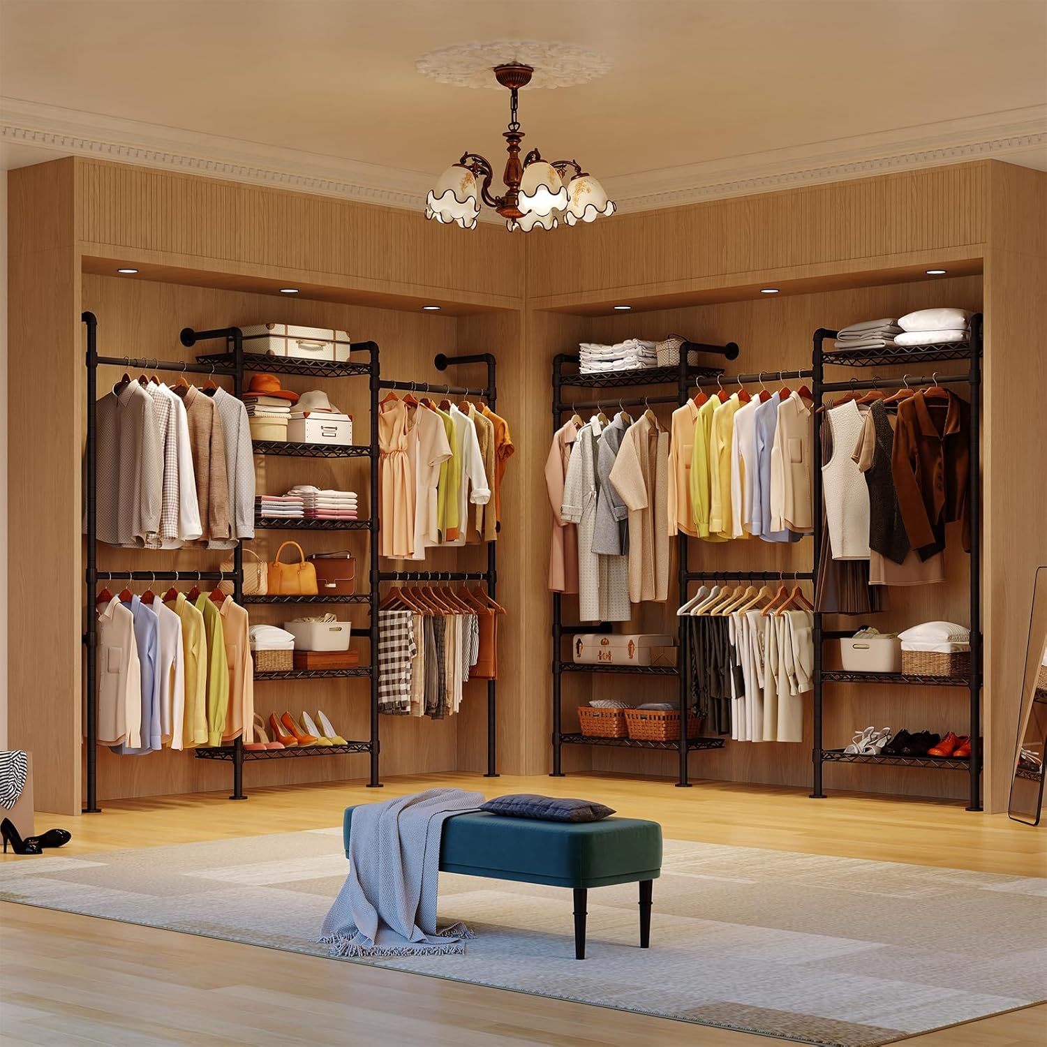 - Customizable & Modular Design: This closet organization system consists of vintage industrial pipe clothes rack that contains 4 retractable rods and 6 pieces of mesh for flexible configuration, allowing you to create a personalized storage solution to fit your space and needs.